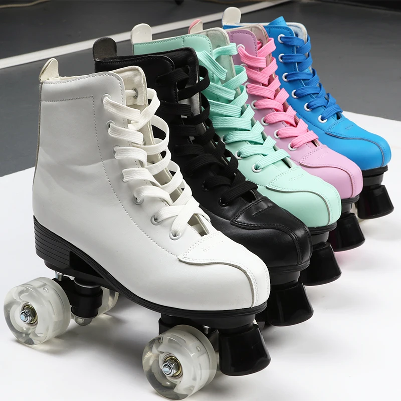 Кроссовки для скейтборда, из искусственной кожи, 9 вариантов, для женщин и мужчин, раздвижные, для начинающих на открытом воздухе, 2 ряда, для взрослых, розовые, 4 колеса, 2021