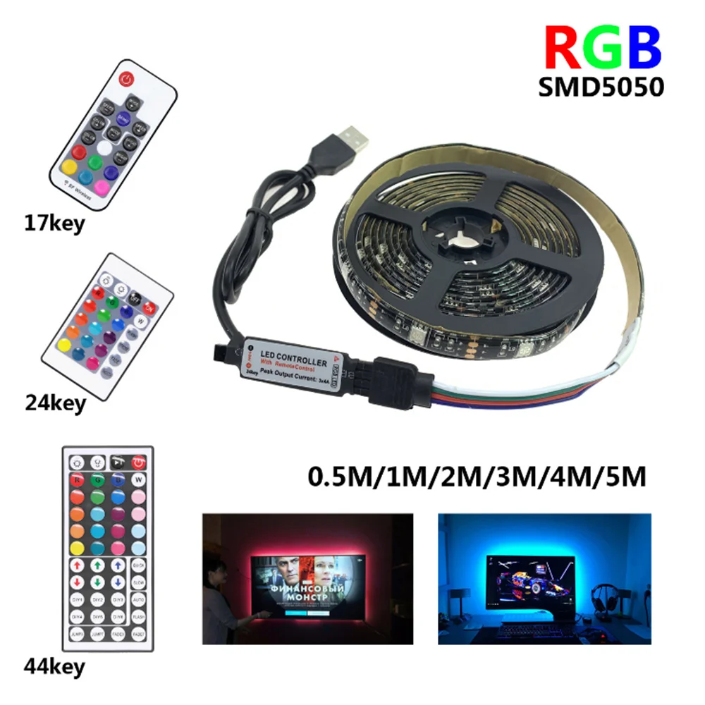 RGB Водонепроницаемая подсветильник ка для телевизора с Bluetooth, Светодиодная лента 5 В, светильник ка 5050 SMD, неоновая вывеска, светодиодсветильник лампа для комнасветильник освещения, светодиоды 24 клавиши44 клавиши