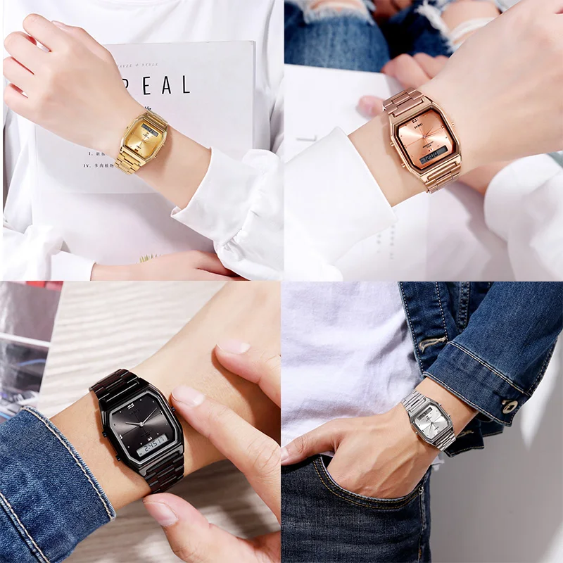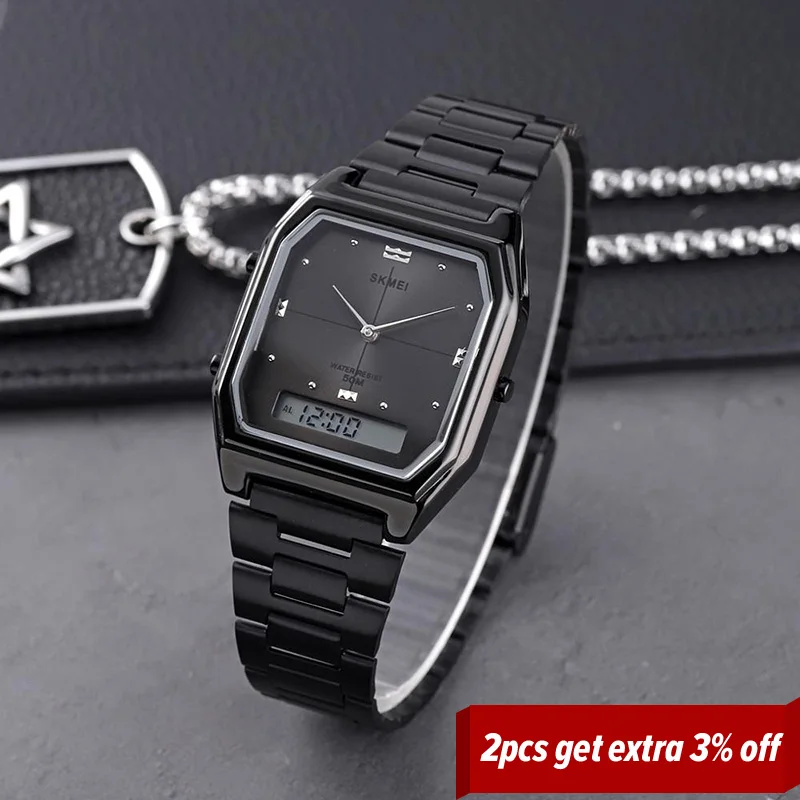 Часы наручные SKMEI мужскиеженские из нержавеющей стали, модные цифровые водонепроницаемые тонкие с хронографом и будильником, в 3 раза, 1612