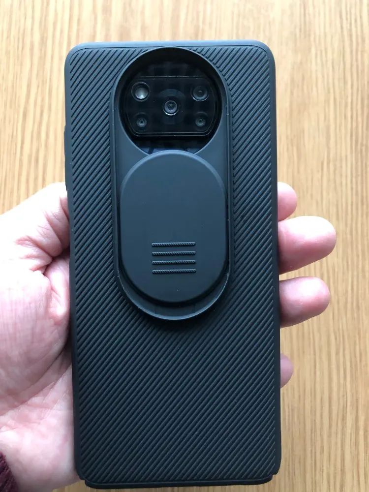 Прибыл за 3 недели с небольшим. Прошу прощения что не сфоткал его сразу, но заверяю, он такой же как и на фото у продавца. Прибыл запечатанный таким образом. Коробка целая, удивлен, не помята, хоть дари кому. Подошёл идеально, приятный на ощупь пластик. Тонкий, не скользкий. На рëбрах, в местах удержания телефона, нанесена дополнительная шероховатость, удобное решение. "Механизм" закрытия камеры весьма интересен, закрывается плотно, само по себе не откроется, нужно приложить небольшое усилие. Сверху, буквально на 0.5 мм есть зазор, поэтому стекло экрана тоже чуть защищает и качельку громкости прикрывает, в общем чехол СУПЕР! Своих денег непременно стоит. "Poco X3"в нëм просто идеален, как минимум этот чехол тоньше родного, который продается с ним.