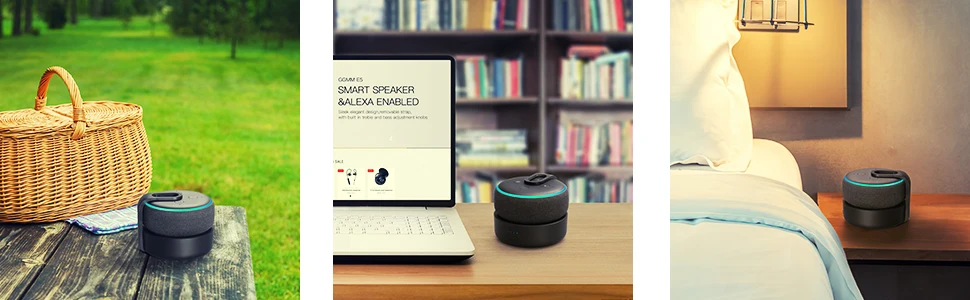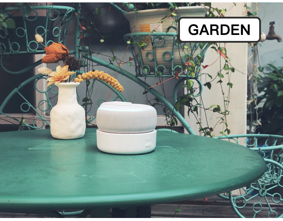 Самое маленькое портативное зарядное устройство на рынке, вы можете отключать его и перемещать в любом месте. Открытая конструкция гарантирует отсутствие засорения или помех в качестве звука, она также играет роль для предотвращения царапин и скольжения динамика умного дома.