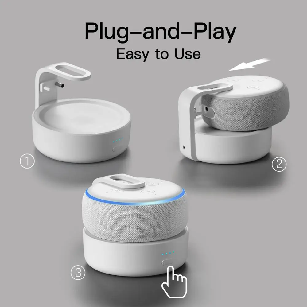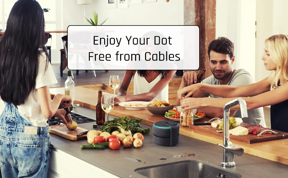 Благодаря встроенной аккумуляторной батарее, наша портативная аккумуляторная батарея для Dot 3-го поколения может быть выпущена из розетки. Легкий дизайн позволяет использовать наше зарядное устройство на кухне, ванной и гостиной, а также позволяет выносить его на балкон, крыльцо и задний двор, чтобы слушать музыку.