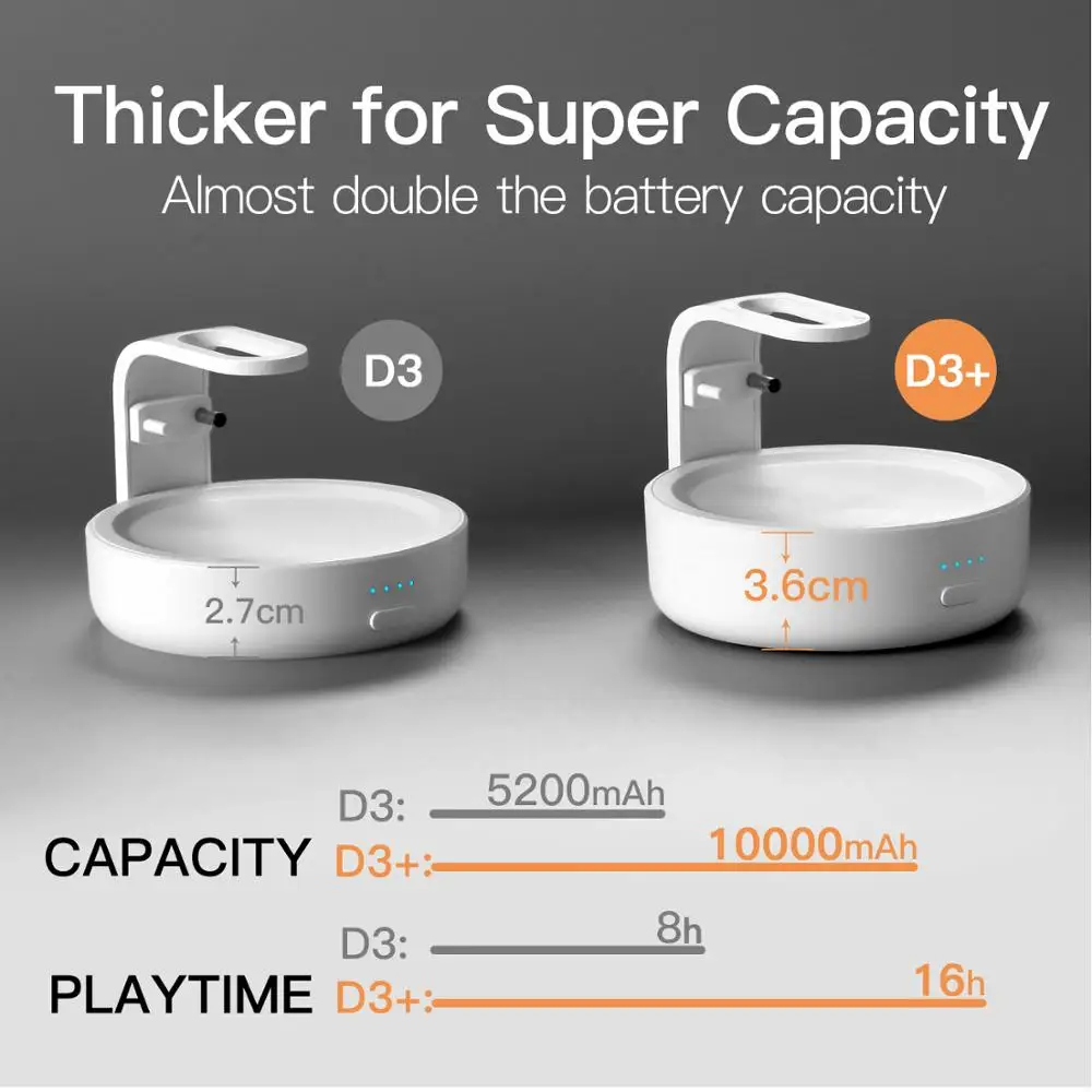 Есть 2 версии этого продукта.D3: 5200 мАч Поддержка 8 часов воспроизведения в 50% громкостиD3 + (plus): 10000 мАч поддержка 16 часов воспроизведения в 50% громкости