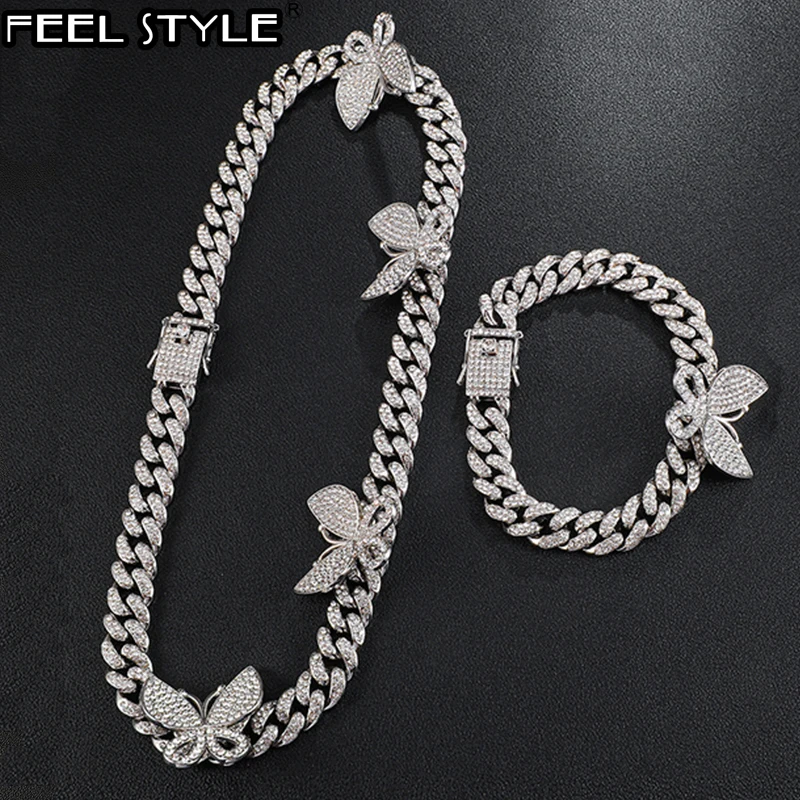 Мужские украшения в стиле хип-хоп, сверкающие стразы из кубинской панцирной цепи Майами, 13 мм, украшенные Фианитами, Украшенные Ожерелье рэпера, 1 комплект