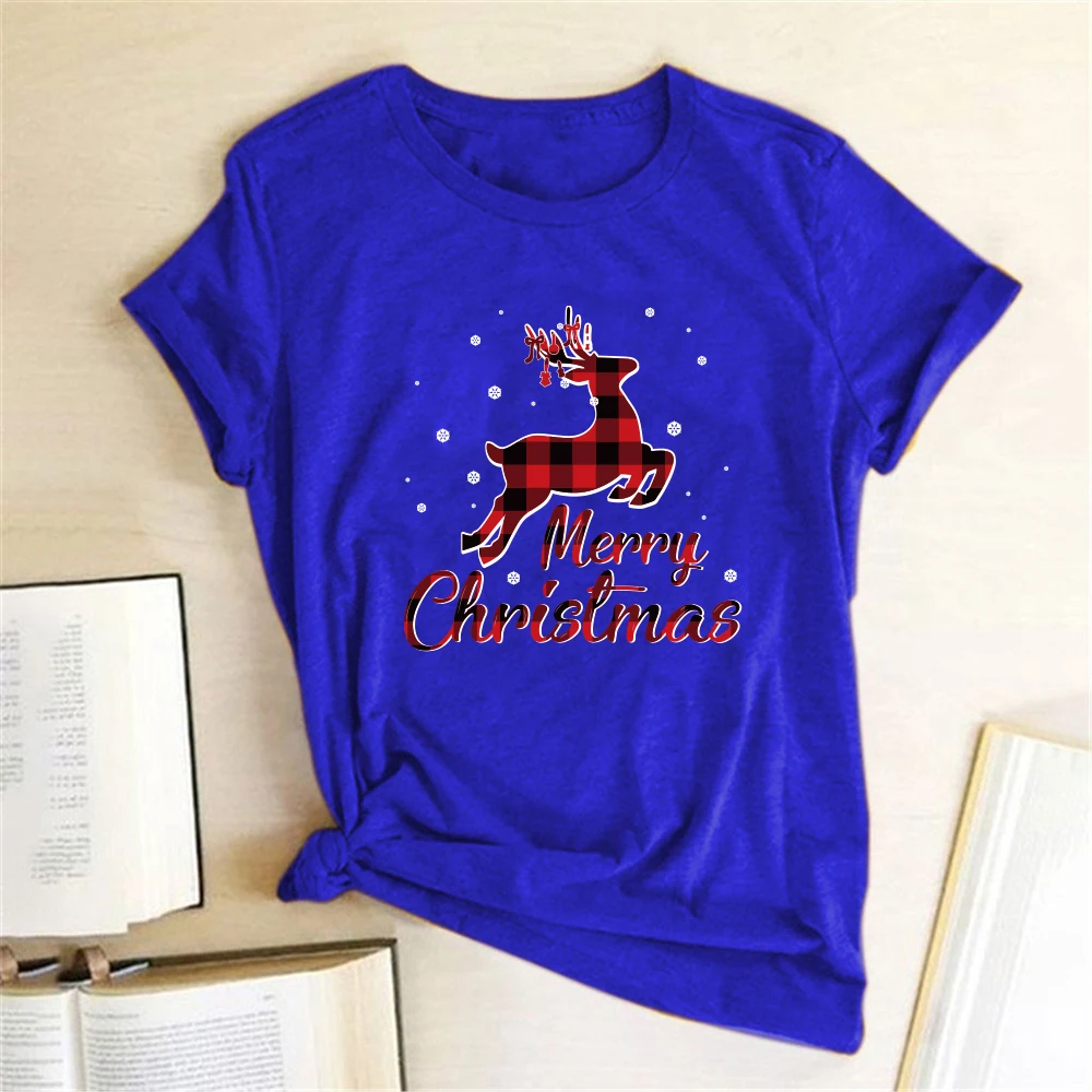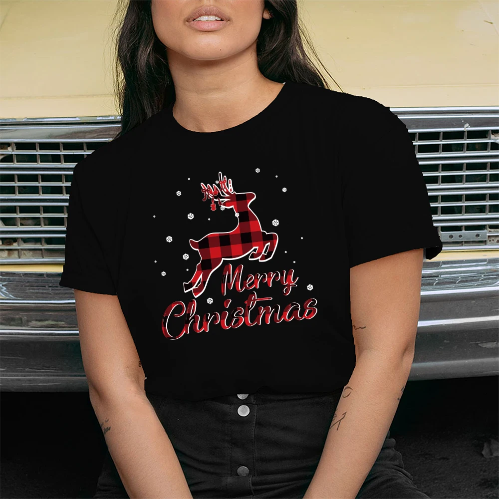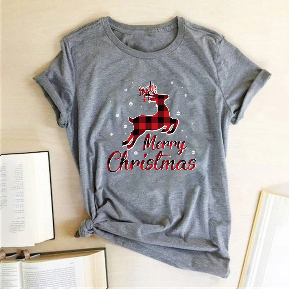 Футболки с принтом рождественского оленя для женщин 2020 Эстетическая одежда модные женские футболки из хлопка с вырезом лодочкой Harajuku Топ женский