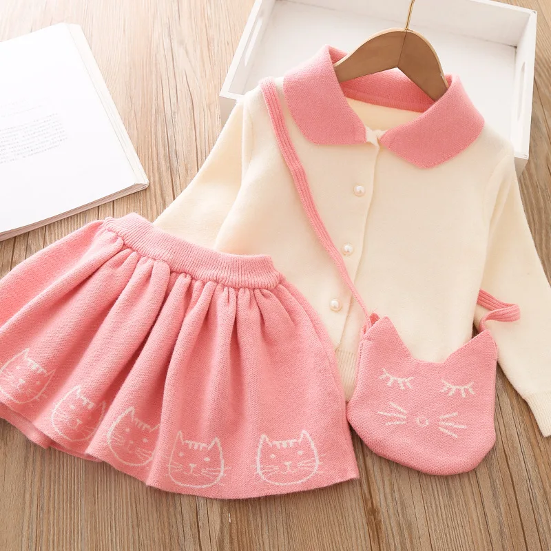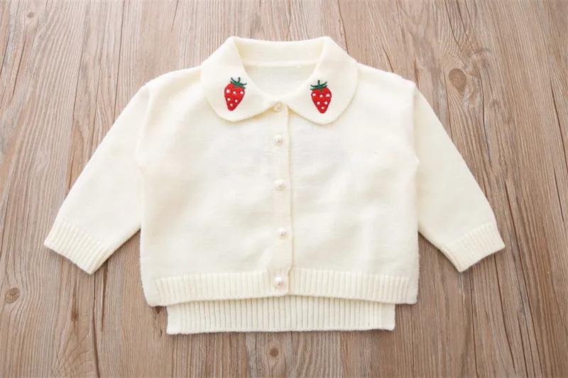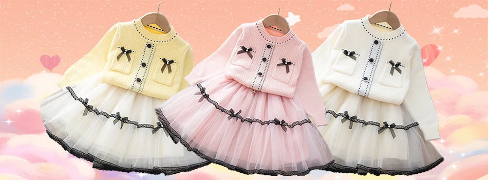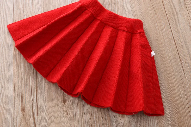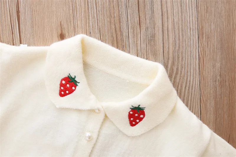 Одежда для маленьких девочек, зимний теплый вязаный свитер, костюм для девочек с клубничным вязаным кардиганом, свитер, куртка, плиссированная юбка из двух предметов