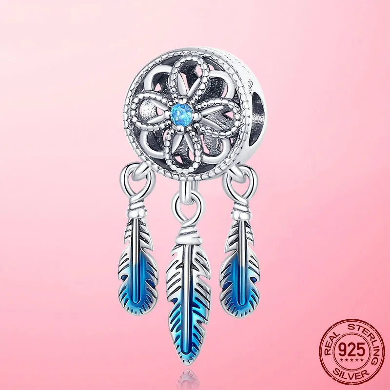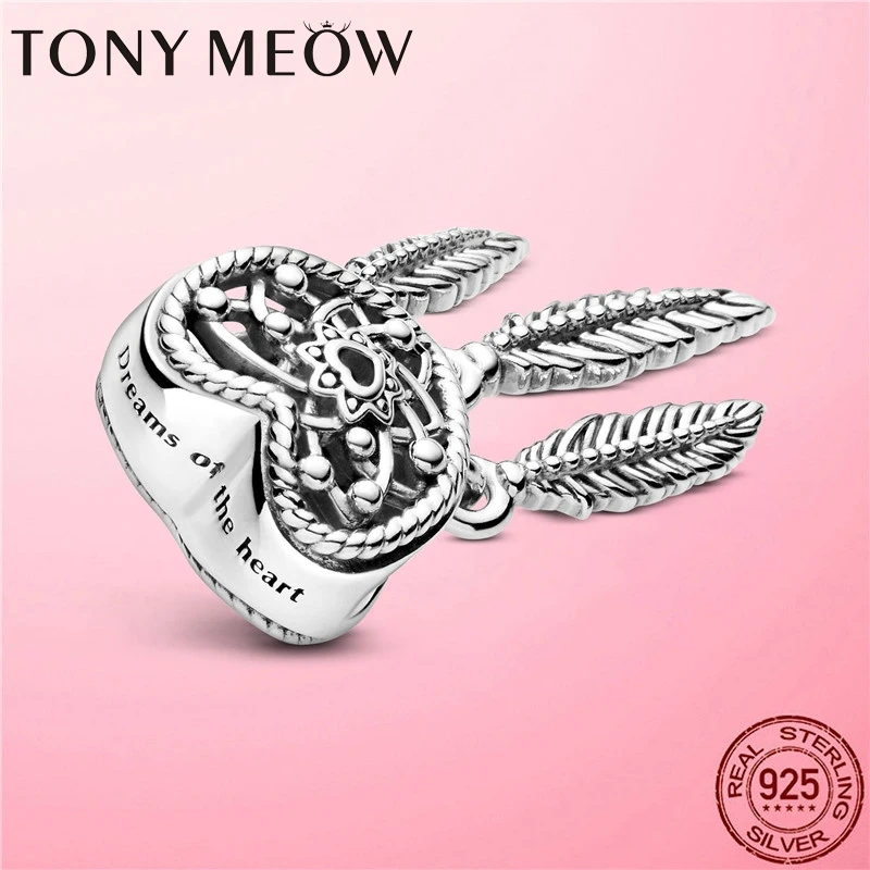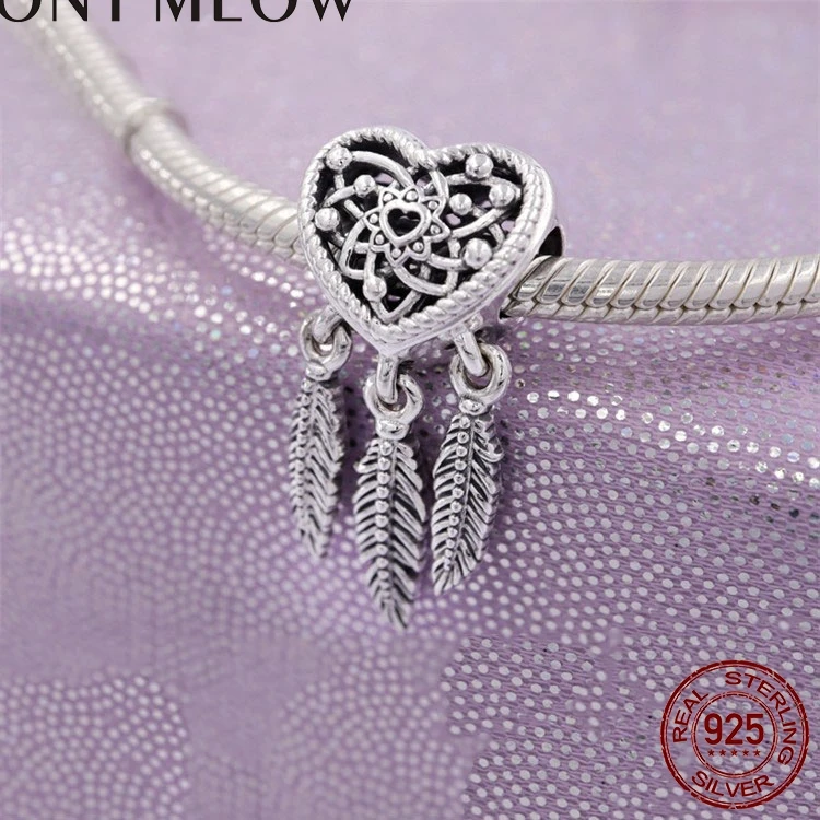 Подвеска Ловец снов серебряного цвета ажурное сердце три пера Ловец снов амулетные бусины подходят для оригинального браслета Pandora сделай сам