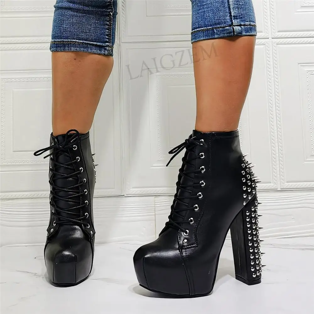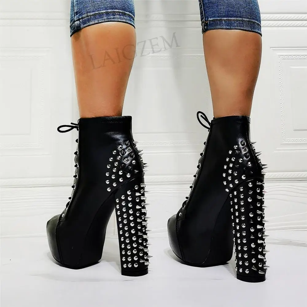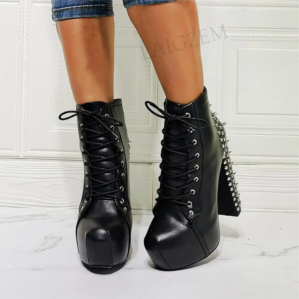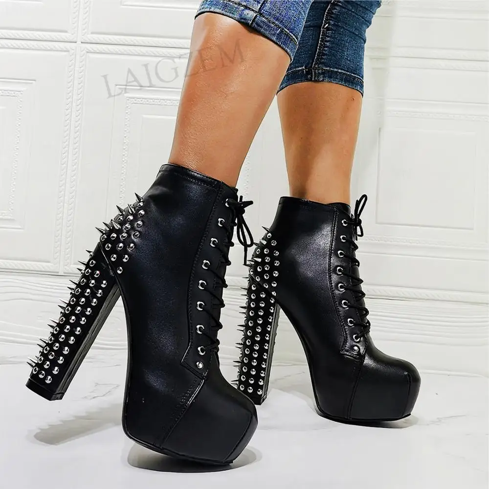 SEIIHEM/женские ботильоны на платформе; Короткие ботинки на высоком массивном каблуке с шипами; Черная обувь унисекс; Женская обувь; Большие размеры 36, 42, 44, 50, 52