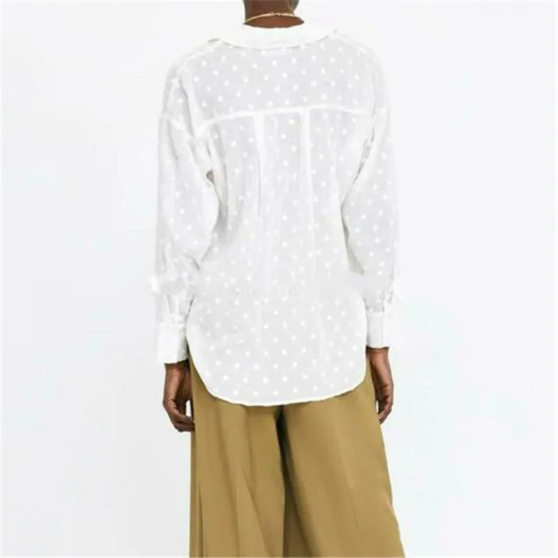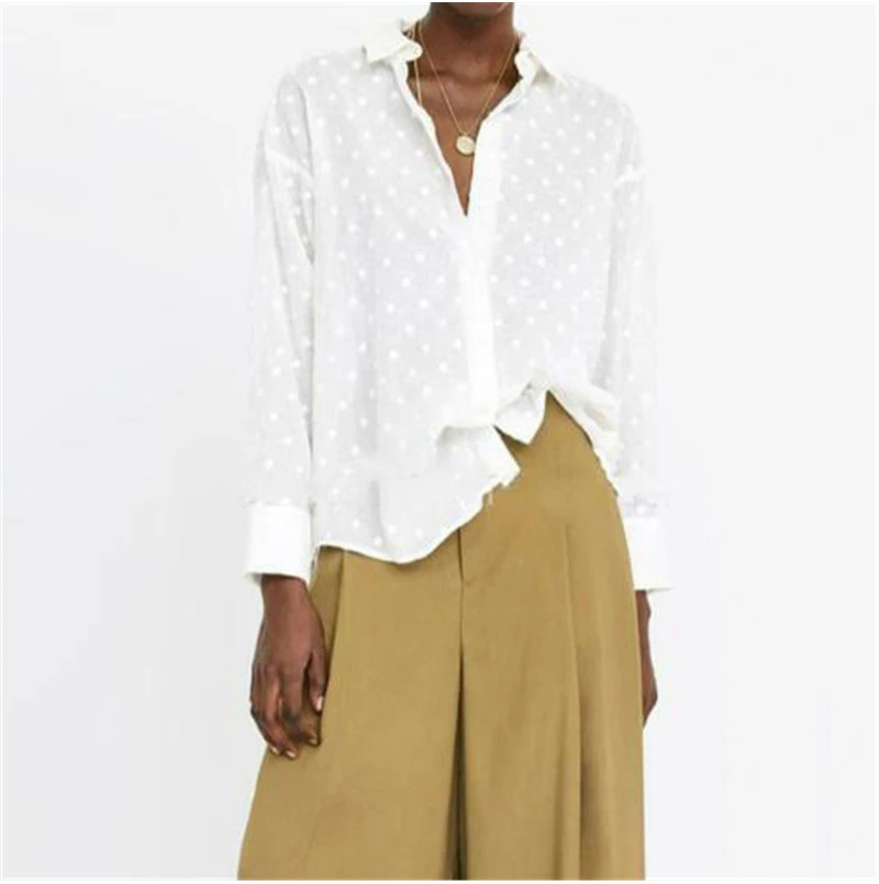 Модные рубашки с длинными рукавами, блузки в горошек, женская элегантная белая рубашка из органической кожи, топы, Дамская рубашка, femme blusa feminina, уличная одежда