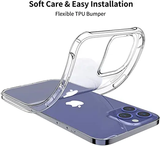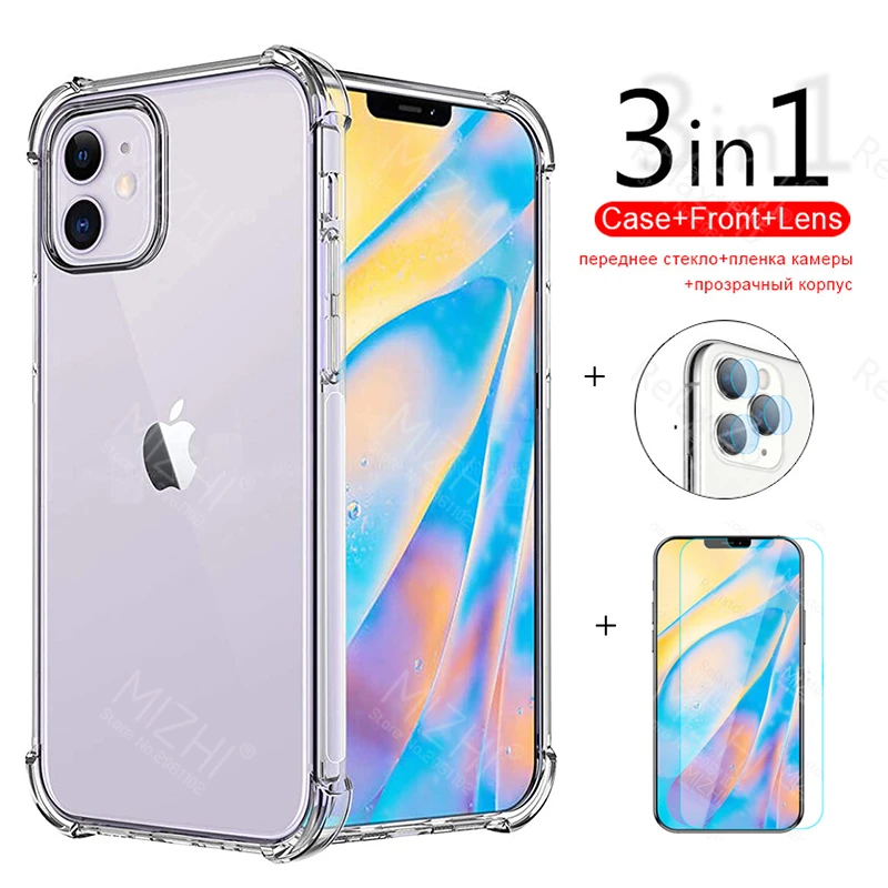 Чехол для iphone 12 pro max, 3 в 1, прозрачный, с закаленным стеклом