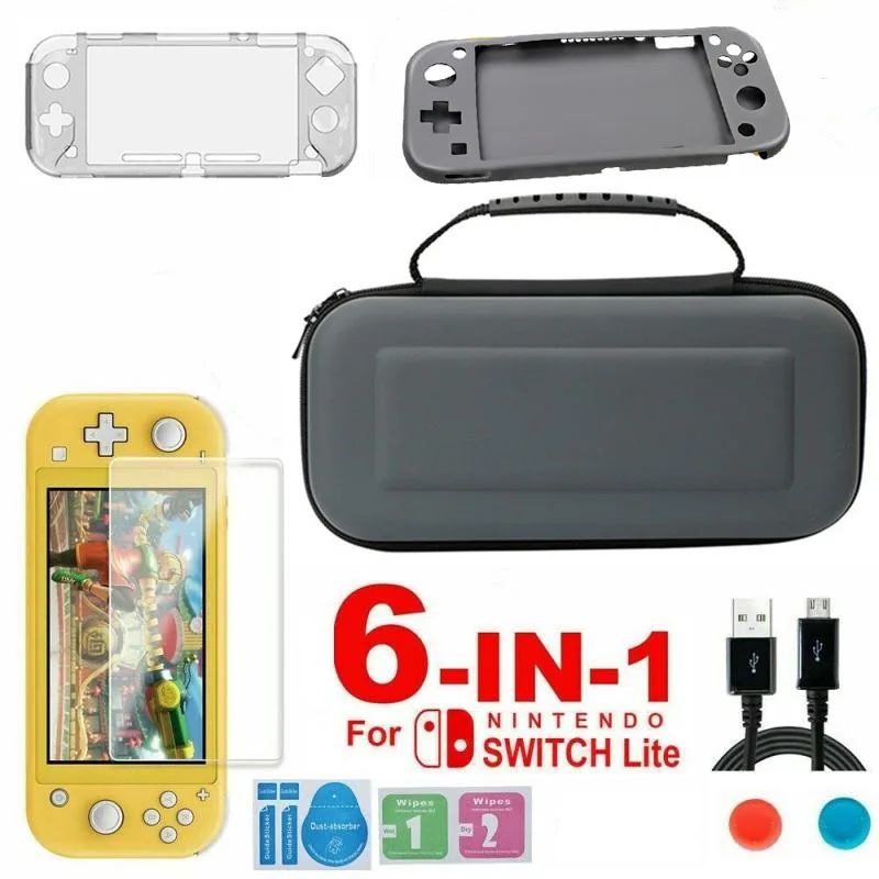 Набор игровых аксессуаров 6 в 1 для Nintendo Switch Для Switch lite, дорожная сумка, защитная крышка для экрана, чехол joy-con, зарядный кабель