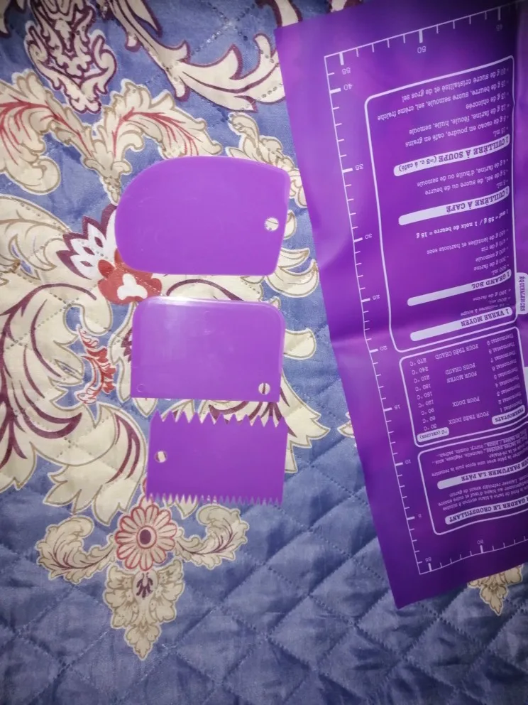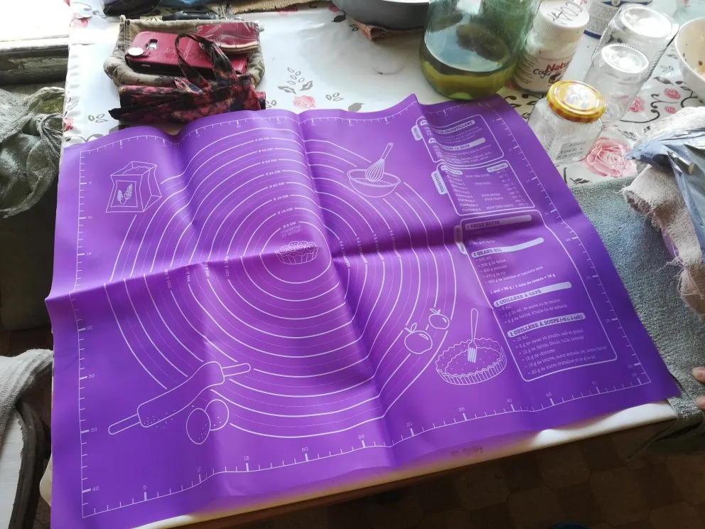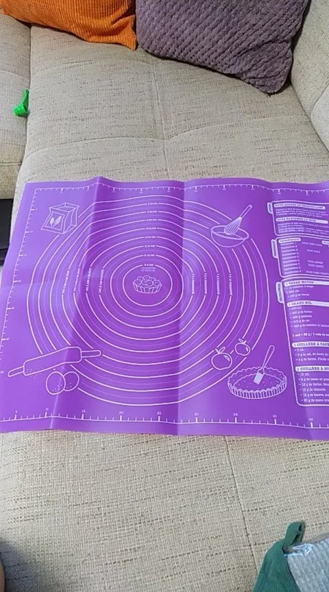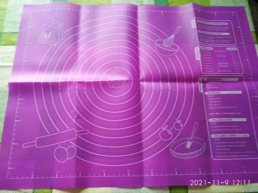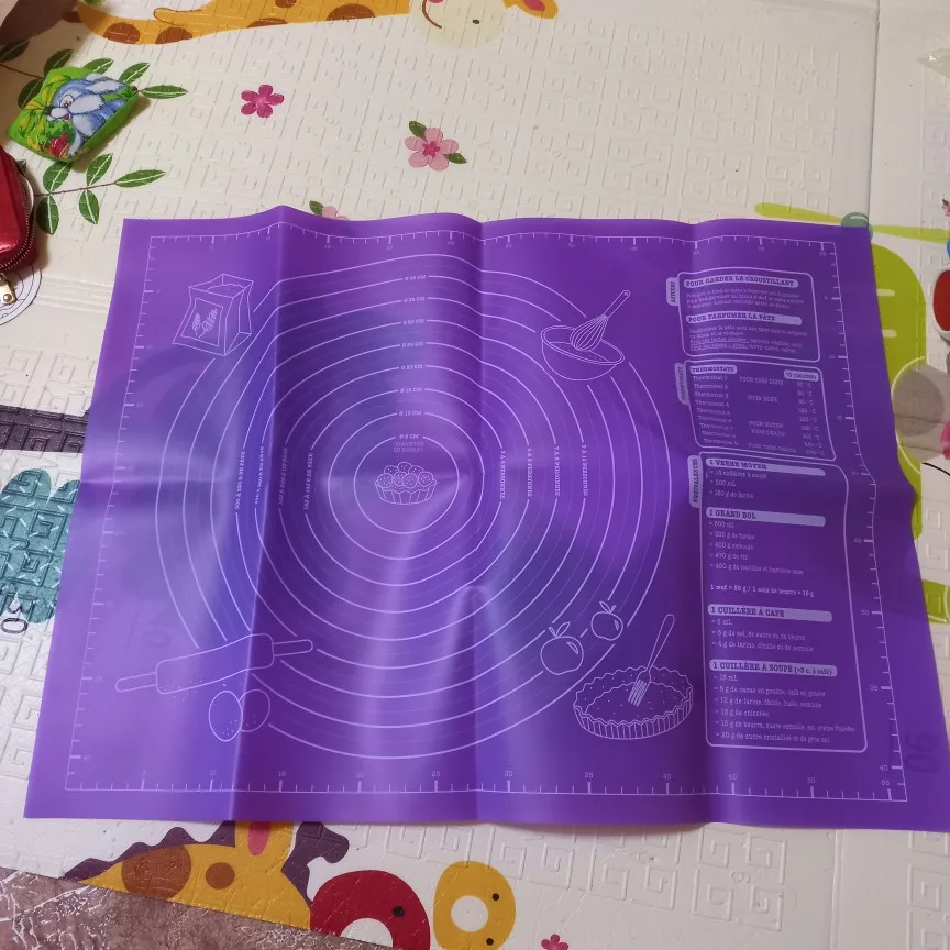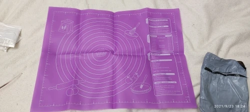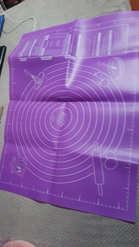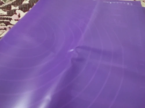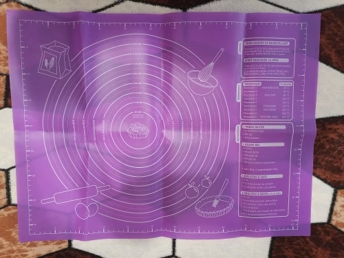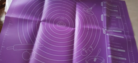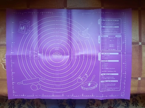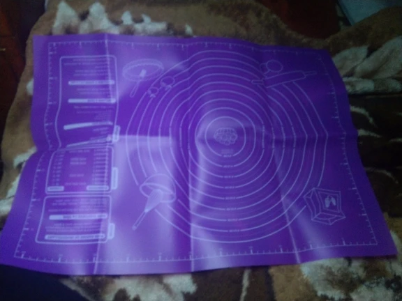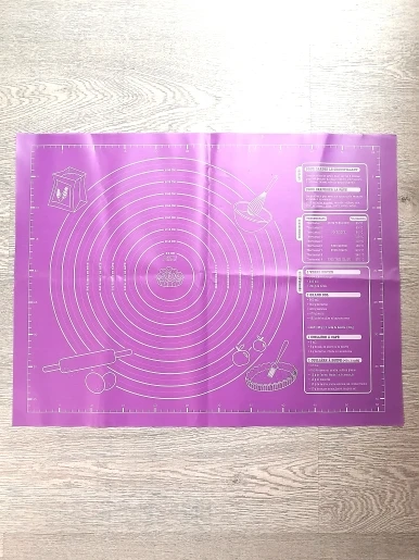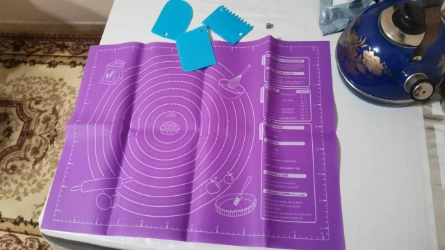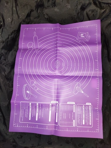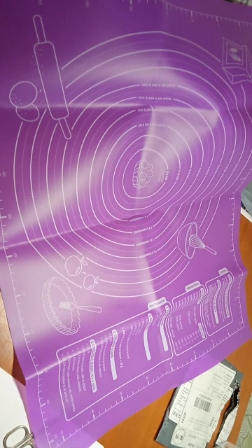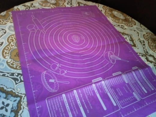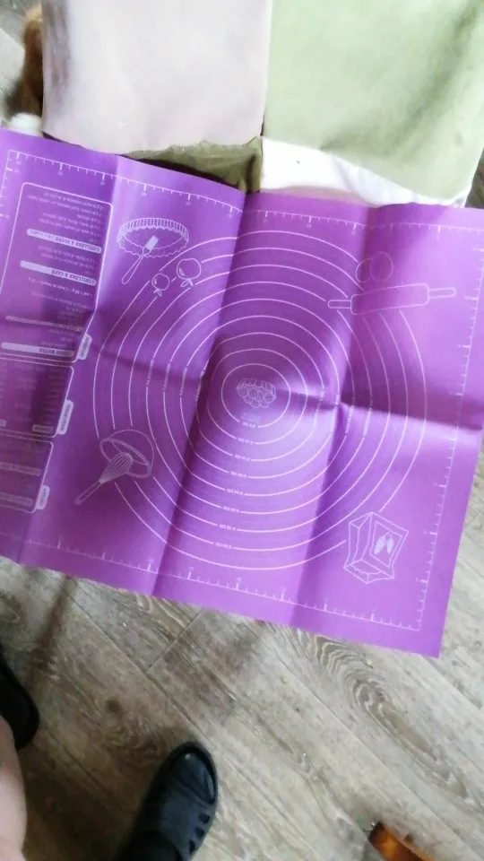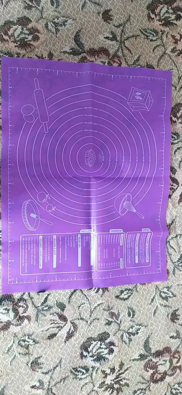 Хороший коврик для раскатки теста, но я ожидала что он будет более эластичный, как силиконовые коврики для выпекания. Этот коврик жёстче, он не тянется вообще, больше напоминает резину, но сварачивается легко. Ещё он на удиваление тонкий. К столу прилипает хорошо, ездить не будет. Пришёл сложенный в три погибели, был сильно мятый, но под горячей водой по большей части распрямился. Думаю со временем разгладится вовсе. В Москву шёл около месяца, трек номер отслеживается.