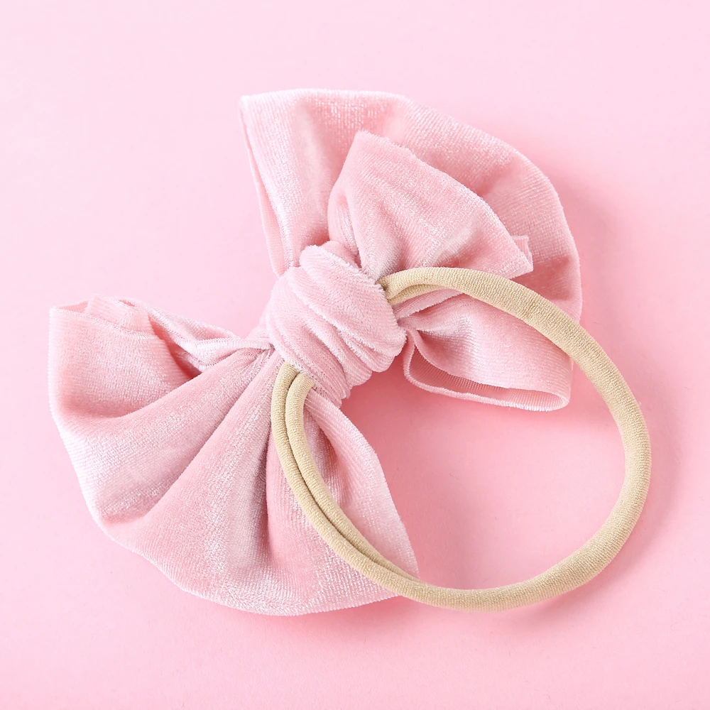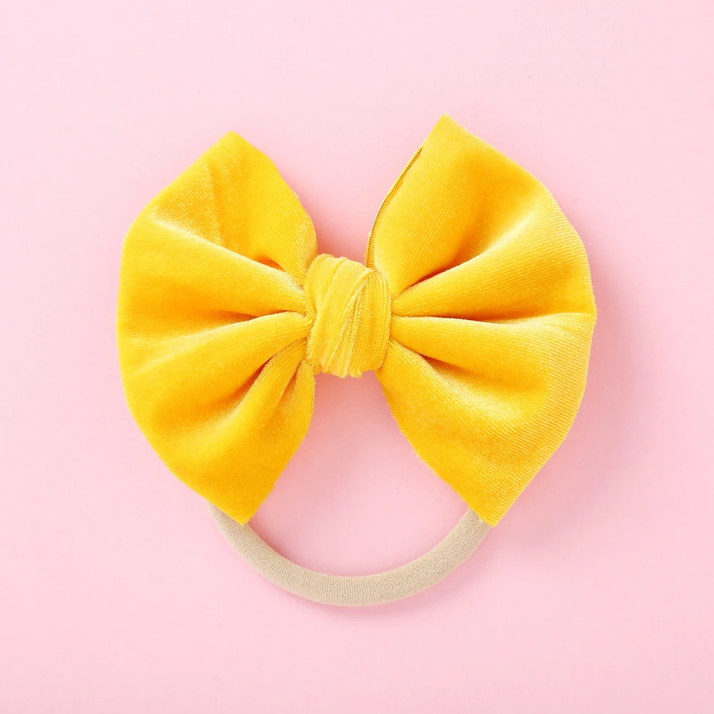 38 шт.лот новые 4-дюймовые гладкие бархатные банты, связанные вручную, с тонкой нейлоновой повязкой на голову или зажимами для девочек, детские бархатные аксессуары для волос в виде тюрбана