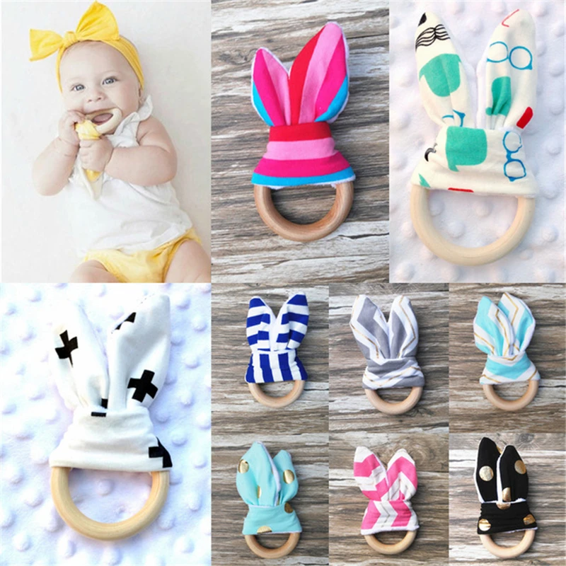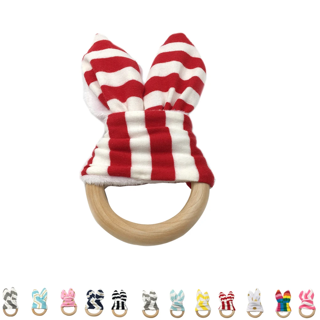 Детское кольцо-прорезыватель, мягкий грызунок в форме уха кролика, кольцо-прорезыватель из натурального дерева, Детское игрушка, ручной Колокольчик, не содержит БФА, детские игрушки-погремушки