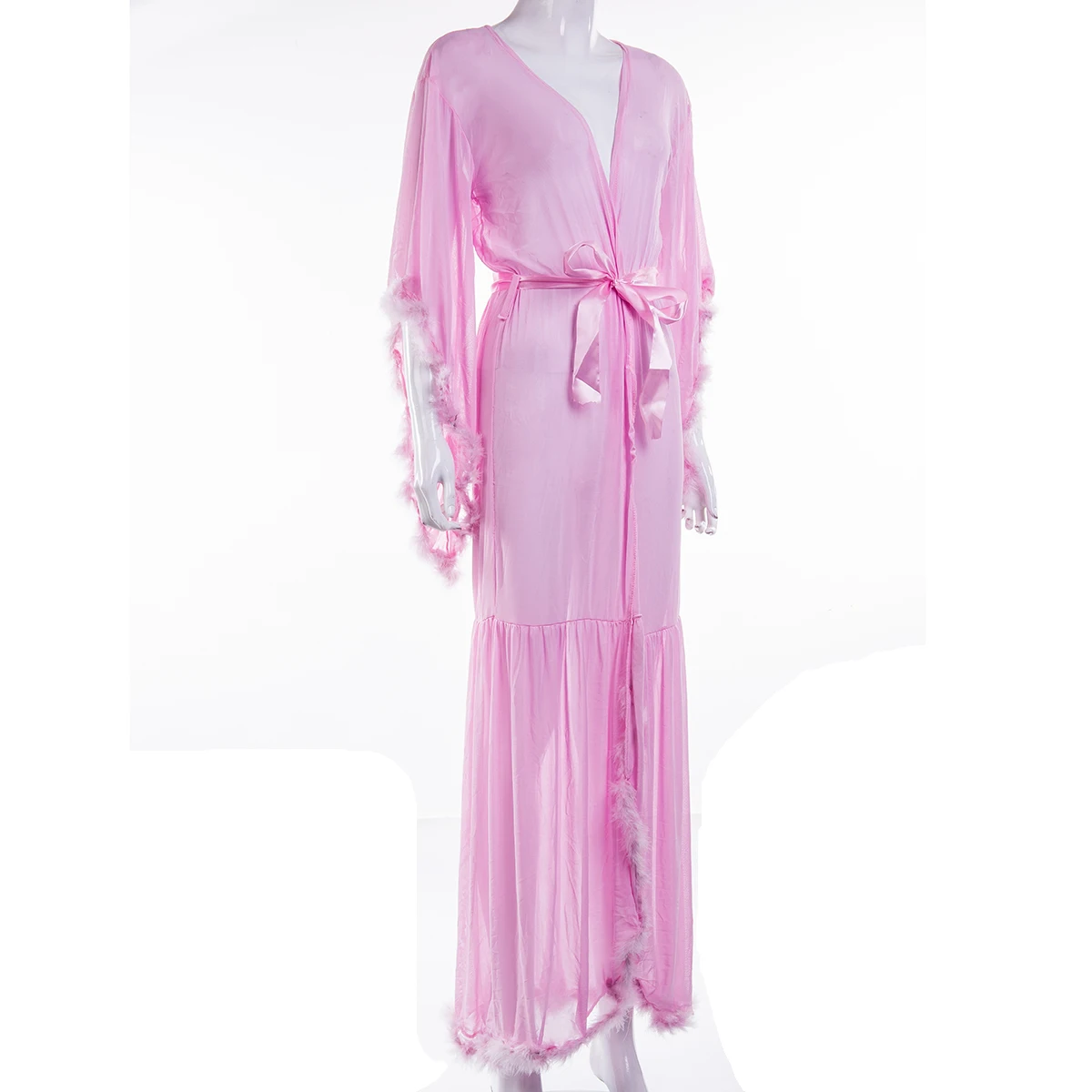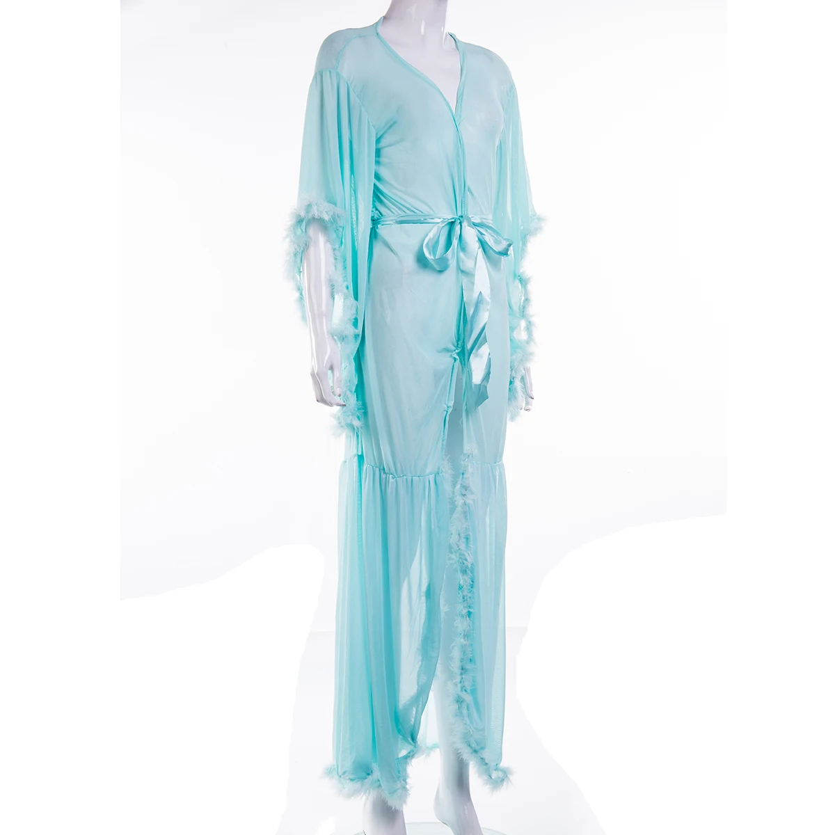 Пикантное женское нижнее белье, ночная рубашка 5 цветов, кружевное кимоно, халат, платье, комбинация с бахромой ночная рубашка с перьями, элегантная домашняя одежда