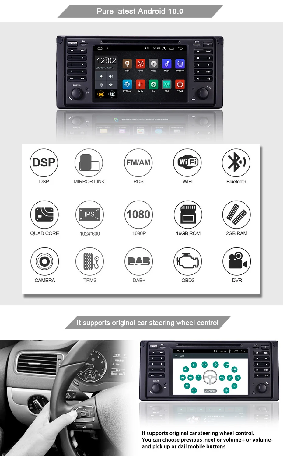 0. Встроенный CarPlay и Android Auto1.1024X600 HD емкостный сенсорный экран, DSP2. Процессор: Android 11 64 бит четырехъядерный ARM A7 4*1,8 ГГц3. Оперативная память (память): 2 ГБ DDR34.Inand Flash: 32 ГБ