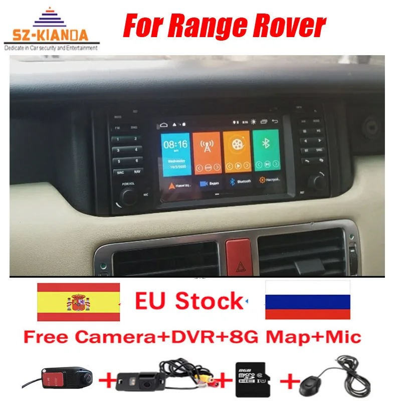 Android 11 автомобильный DVD GPS навигация для Range Rover 2002-2005 Wifi 3G GPS Bluetooth Радио RDS USB рулевое колесо управление Зеркало СсылкаУправление + Телефонная книга + камера заднего вида + камера переднего вида DVR + 8 Гб sd-карта с картой + внешний микрофон