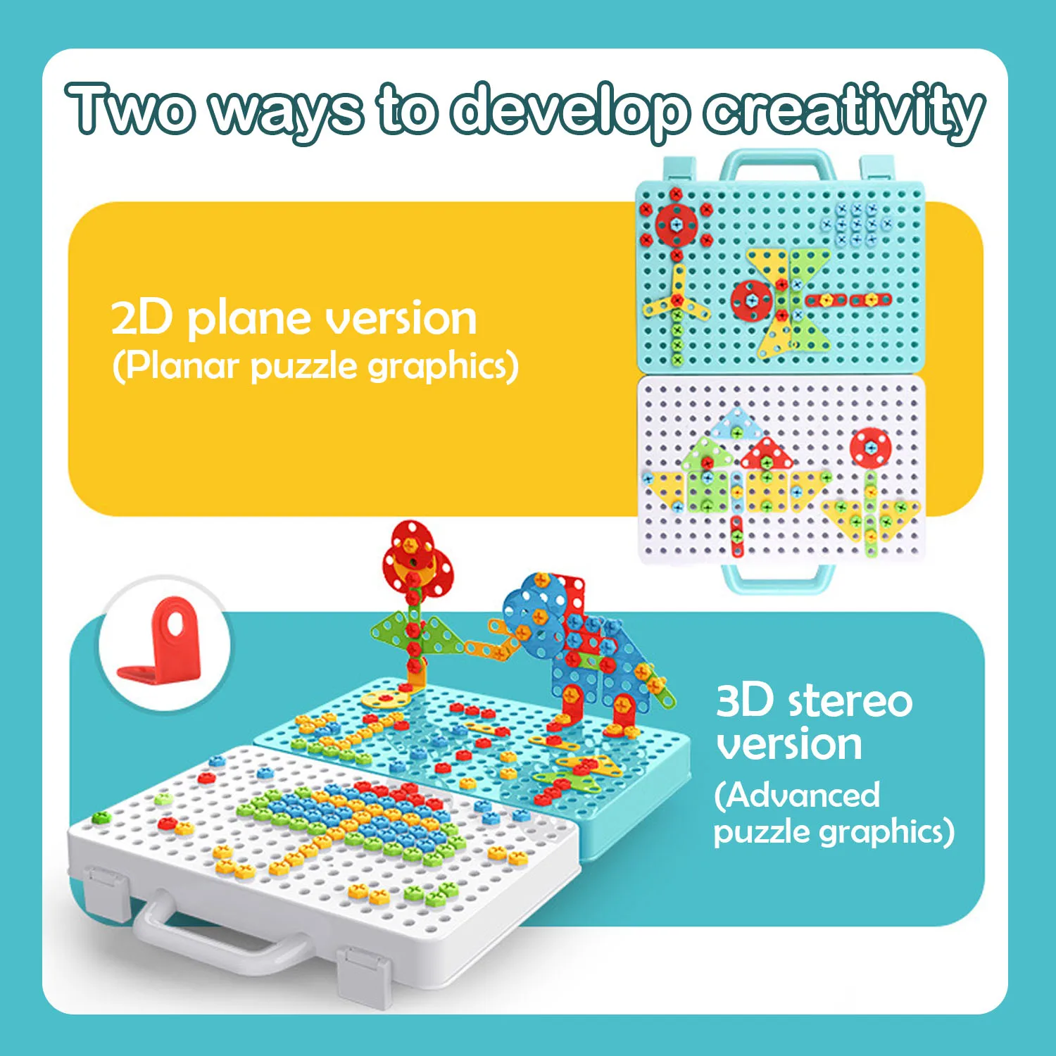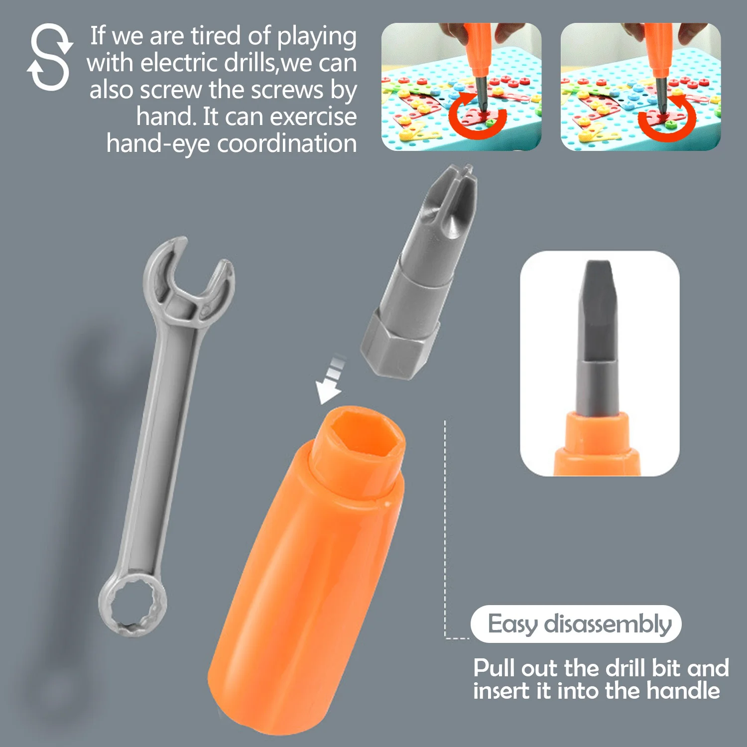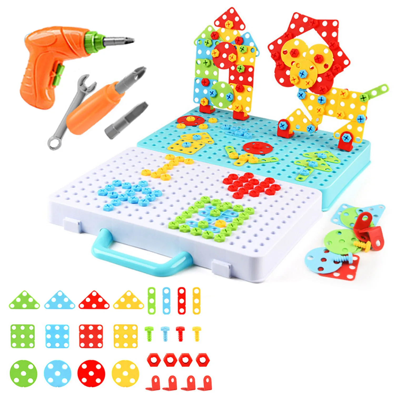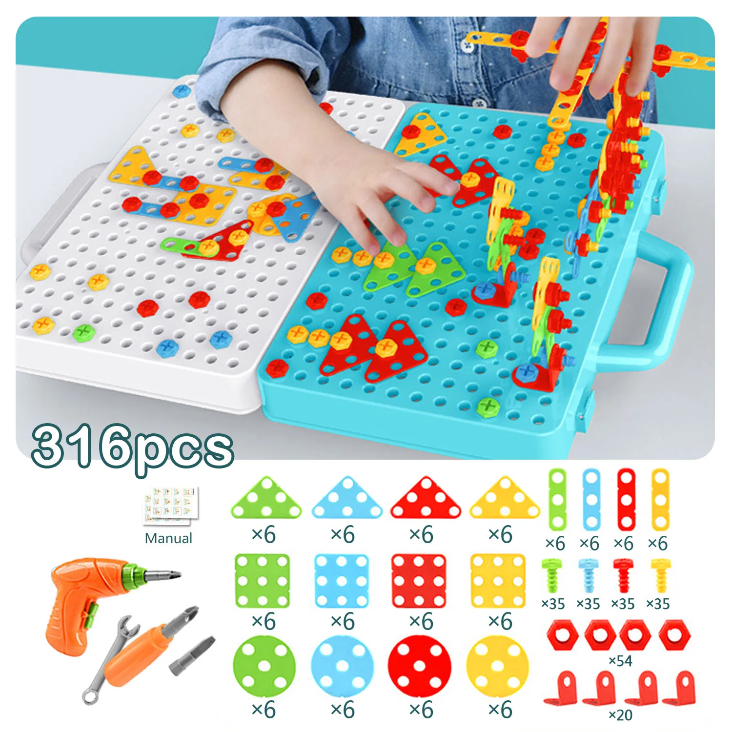 Besegad 316 шт 2D 3D электрическая дрель головоломка пегборд строительные блоки игра Развивающие игрушки для детей подарок на день рождения Рождество Подробности: Многофункциональные игрушки:Дети могут построить 2D и 3D головоломки с электрической дрелью или отверткой, такими как животные, цветы и самолеты, дом, ветряная мельница и т. Д. Просто следуйте инструкции пользователя или используйте свое воображение, чтобы создать больше вещей. Безопасный материал:Все они изготовлены из экологически чистых материалов ABS, которые не токсичны, не выцветают и не острые края, не повредят руки вашего ребенка, безопасно играть. Интеллектуальное развитие:Помогает развивать координацию рук и глаз детей, творческие способности и мелкую моторику. Дети могут играть вместе с друзьями или родителями, развивают социальные навыки и развивают отношения между родителем и ребенком. Идеальный подарок для детей:Прекрасный подарок для ваших малышей на день рождения, праздник, Рождество, Хэллоуин, День благодарения, новый год, Детский день или другие особые дни. PACKEAGE включает в себя:Набор включает в себя 1 электрическую дрель, 1 отвертку, 1 запасной бит, 1 гаечный ключ, 24 треугольных блока, 24 квадратных блока, 24 круглых блока, 24 коннектора, 140 шт. винтов, 54 шт. гаек, 20 шт. угловых соединителей, 1 шт. ящик для хранения и 1 шт. руководство пользователя, всего 316 шт. Описание:1. Электрическая дрель имеет 2 кнопки для затягивания или ослабления винтов. Скорость вращения сверла медленная и стабильная, безопасная в использовании.2. Питание от 2 батарей AA (не входят в комплект), дети могут легко использовать электрическую дрель, без усилий и веселиться.3. Все предметы хранятся в ящике для хранения, их легко упаковать. Также имеет ручку для переноски, идеально подходит для ношения.4. Электрическая игрушка-сверло-набор поможет детям построить мелкую моторику, координацию рук и глаз и повысить творческие способности, сохраняя их развлекаемыми в течение нескольких часов. Спецификация:Материал: АБС-пластикРасширенный размер: 48x30 см/18,90x11,81 дюймаКоробка для хранения Размер: 30x24x6,5 см/11,81x9,45x2,56 дюймовИсточник питания электрической дрели: 2 батарейки типа АА(Не входит в комплект)Подходящий возраст: 3 года и выше Примечание:1. Из-за ручного измерения возможны небольшие отклонения.2. Дети должны находиться под присмотром взрослых, чтобы играть с ним, чтобы предотвратить несчастные случаи. Посылка:1 Набор игрушек (275/276/316 шт)