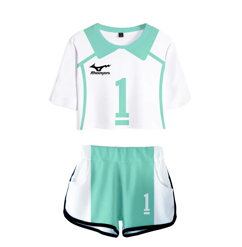 Футболка Haikyuu с пупком росы + короткие штаны 3D ворона старшая школа Let's HinataKageyama Tobio униформа для волейбольной команды женские комплекты 4XL