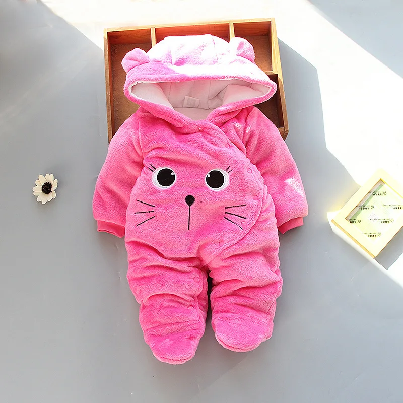 Комбинезон для новорожденных, зимний костюм, одежда, теплая детская одежда из кораллового флиса, комбинезон с милыми мультяшными животными, детские комбинезоны, Комбинезоны