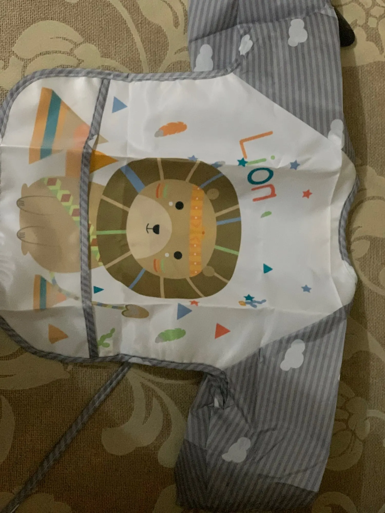 Perfecto. me encanta y a mi niño el leon le llama mucho la atencion, es super practico y cuando empiece a aprender a comer solito le resguardará de todo lo que pueda tirar o verter