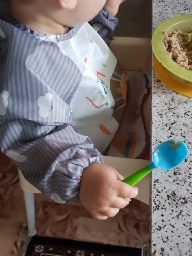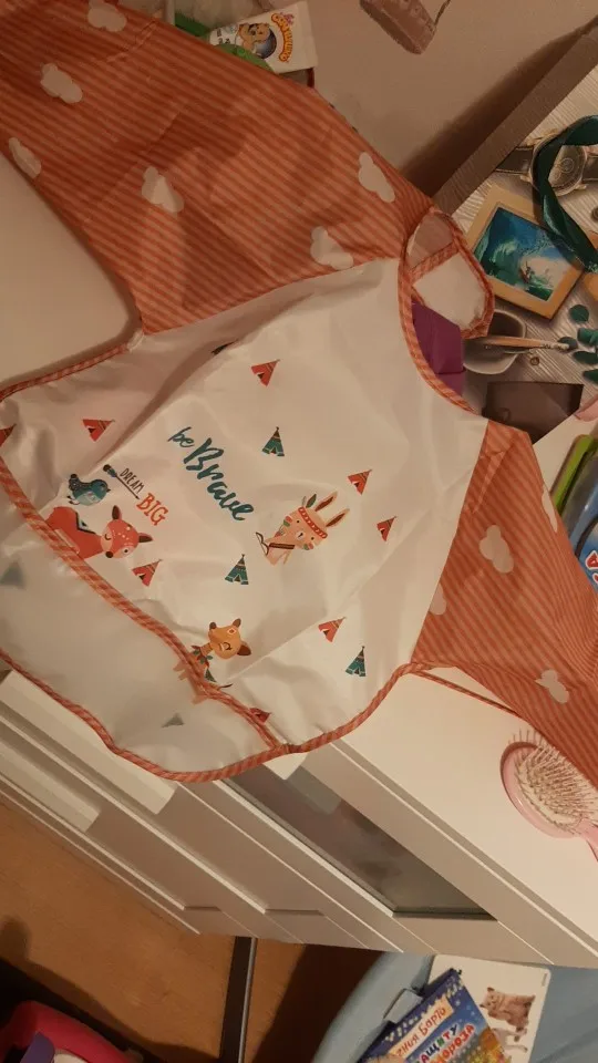 Хороший фартук, но для деток после года, на 8 месяцев великоват. Мешает кушать