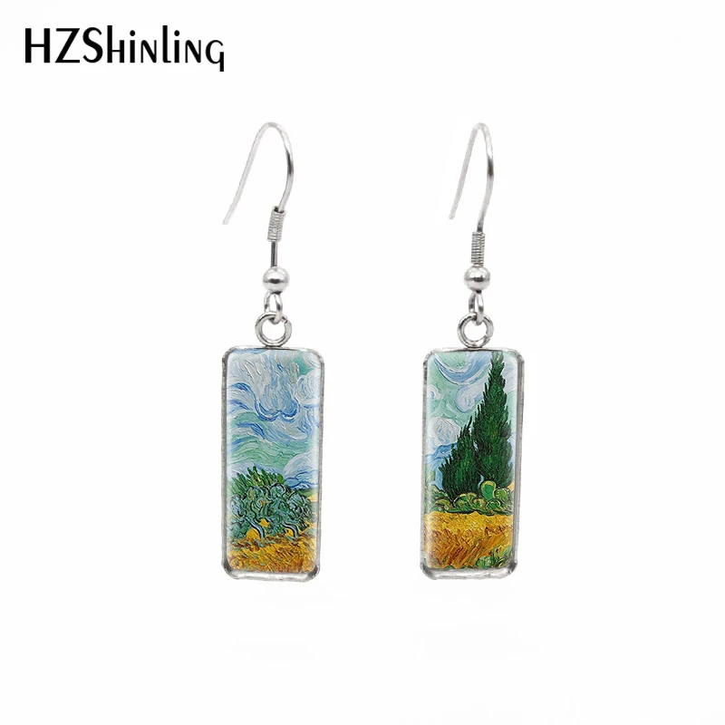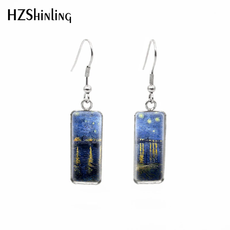 Серьги-Крючки с картиной Ван Гога, прямоугольные серьги Звездная но...