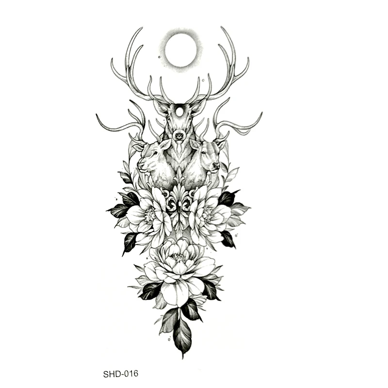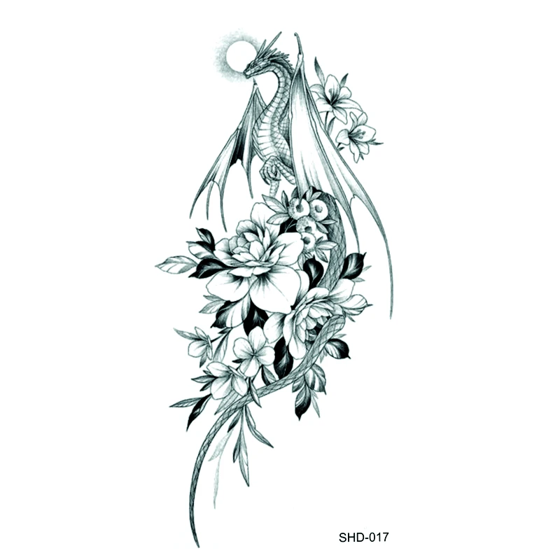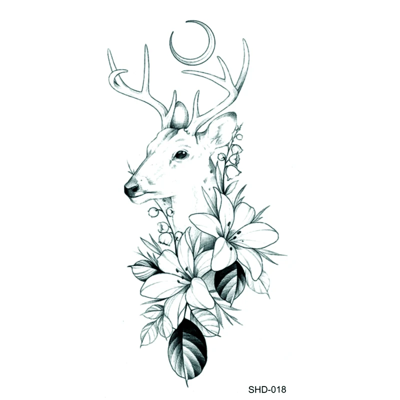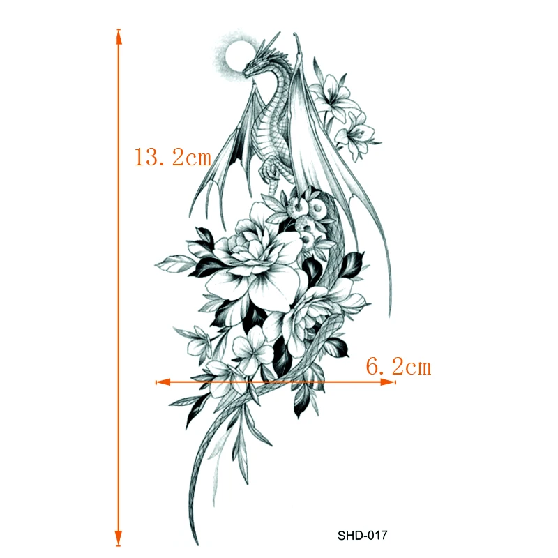 Временные водонепроницаемые татуировки, три стиля, серый цветокдраконоленьКоза, мужские татуировки, мужские татуировки, Поддельные рукава для татуировки, наклейки с хной