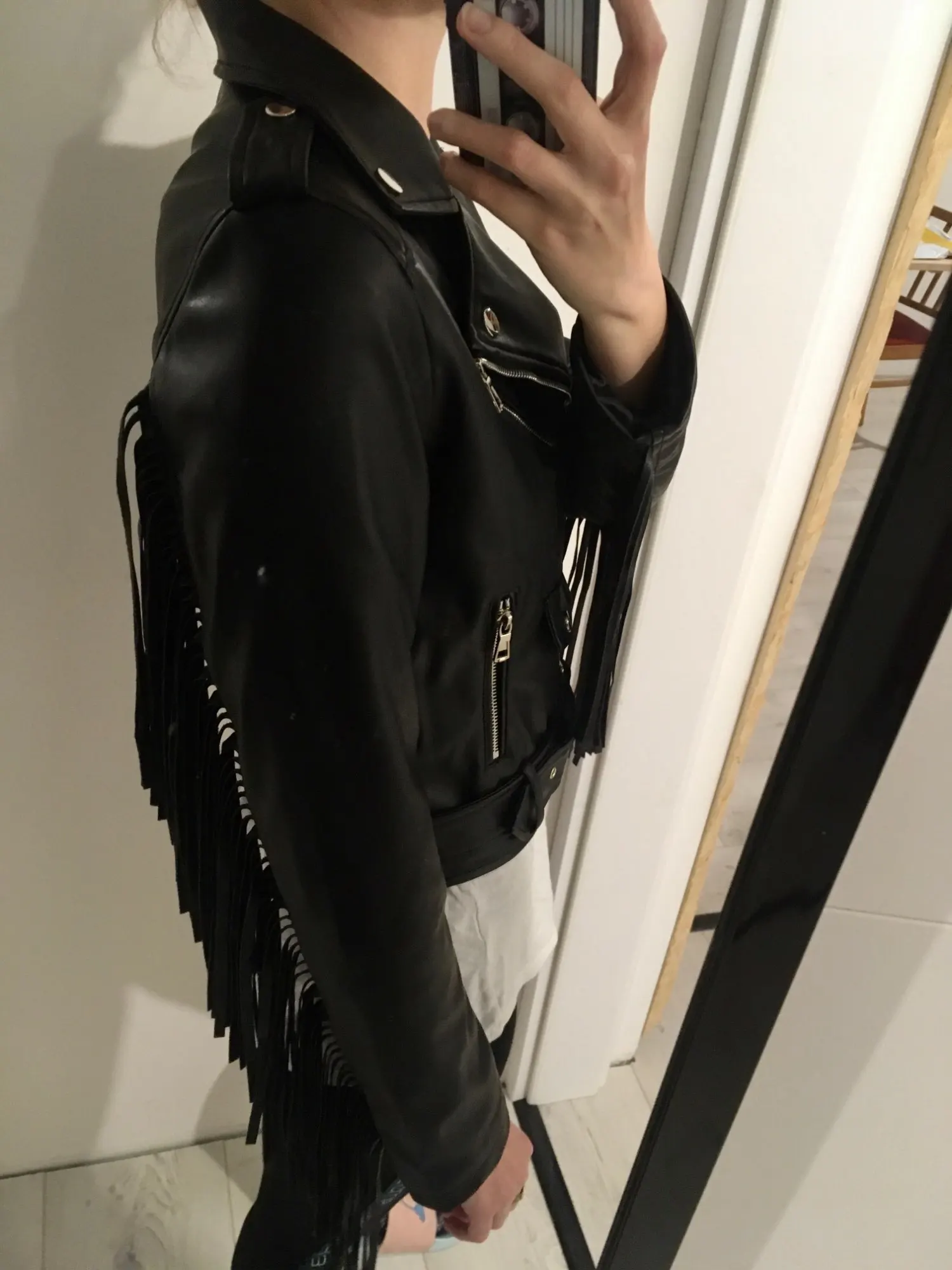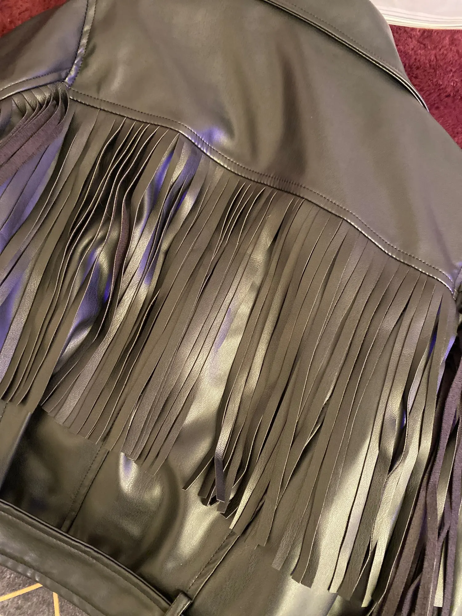 Куртка женская короткая из искусственной кожи, с бахромой, с бахромой