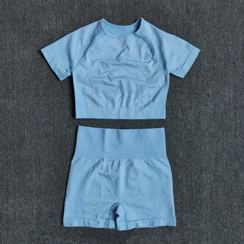 Комплект спортивный женский для йоги, бесшовный укороченный Топ с длинным рукавом и леггинсы с высокой талией, 235 шт.