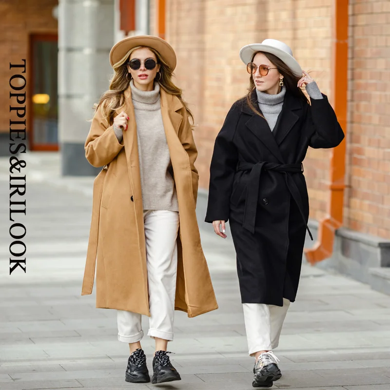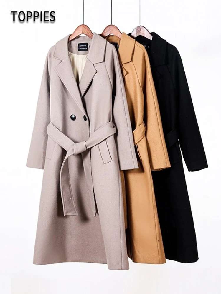 Женское длинное двубортное пальто Toppies, куртка из смеси 2022 шерсти, верхняя одежда, весна 50%