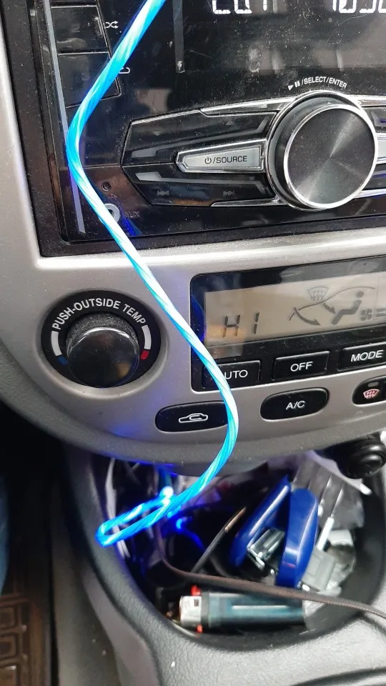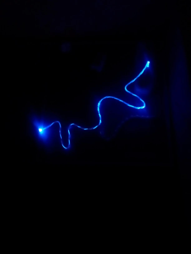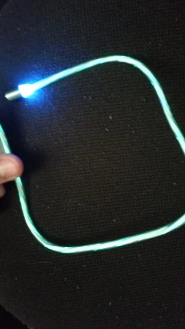 Работает. Подсветка мигающая, более яркая вначале (ближе к источнику питания), потребляет 0.04A. Шнуры и наконечники тут продаются отдельно (для непонятливых). Пришли в своём и общем пакете от 6 разных быстроотправляющих продавцов по общему трек-номеру (всего на распродаже заказывал у 9 продавцов).