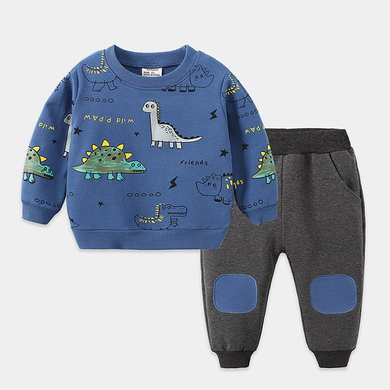 Модный спортивный костюм для маленьких мальчиков на весну и осень, детская повседневная одежда, Детский свитер с мультяшным рисунком + штаны, комплект одежды из 2 предметов, хлопковые трикотажные изделия