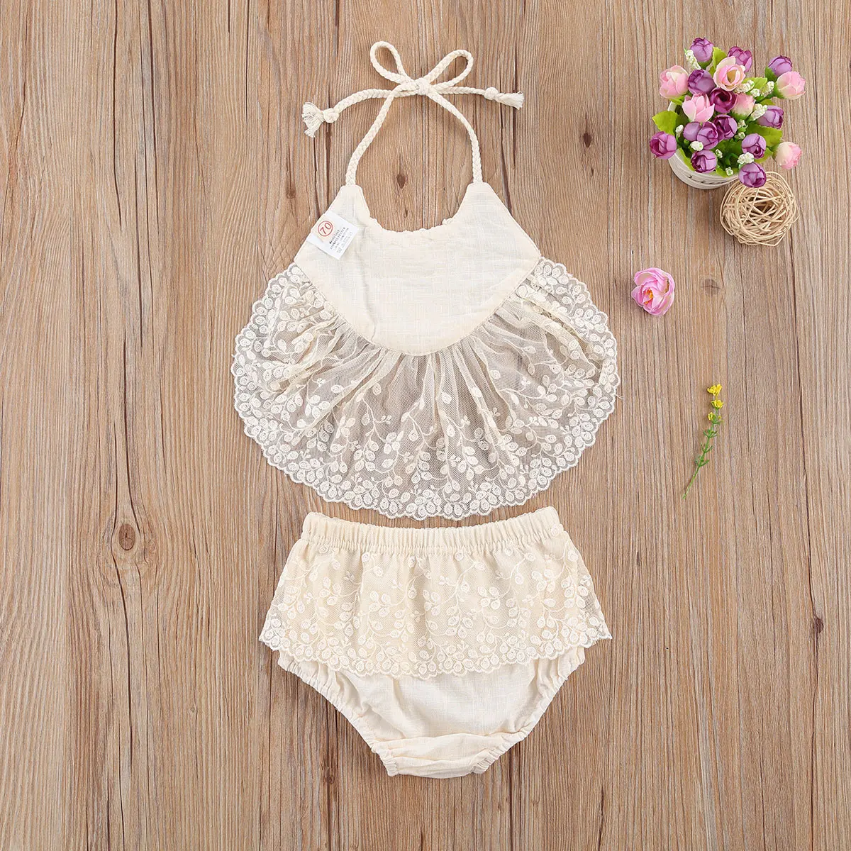 FOCUSNORMкомплекты одежды для новорожденных девочек кружевной жилет без рукавов с цветочным принтом топы + шорты, брюки комплект из 2 предметов на возраст от 0 до 24 месяцев