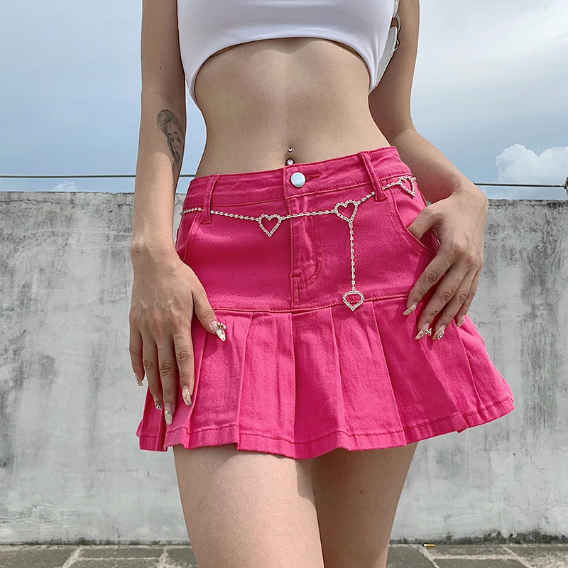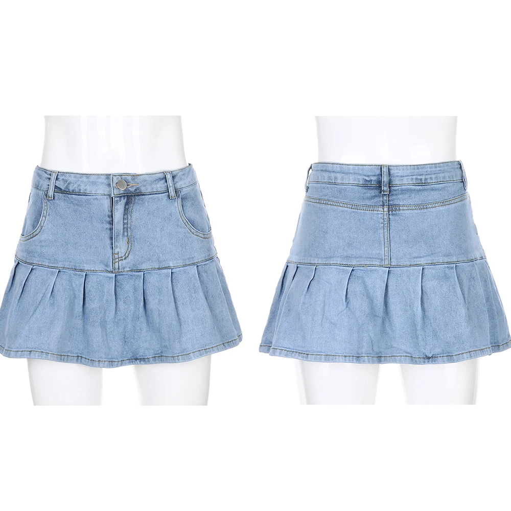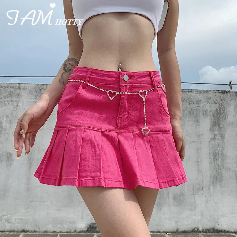 Цветная Милая плиссированная джинсовая юбка А-силуэта, винтажная теннисная юбка-карандаш в Корейском стиле Харадзюку, белые джинсовые юбки-карандаш, Клубная одежда 90-х, Iamhotty