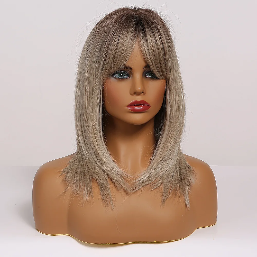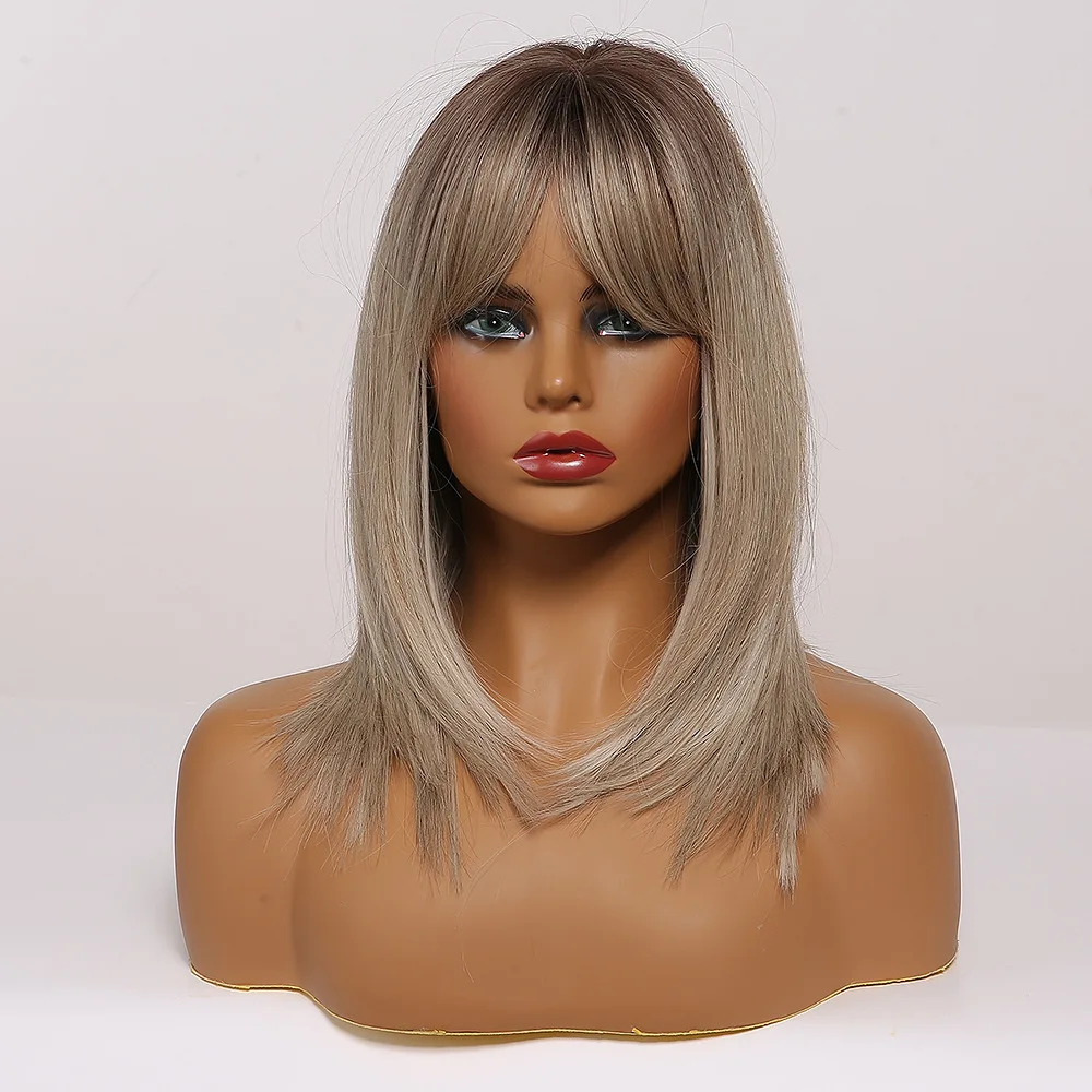Парик женский синтетический с челкой, средней прямости, с эффектом ...