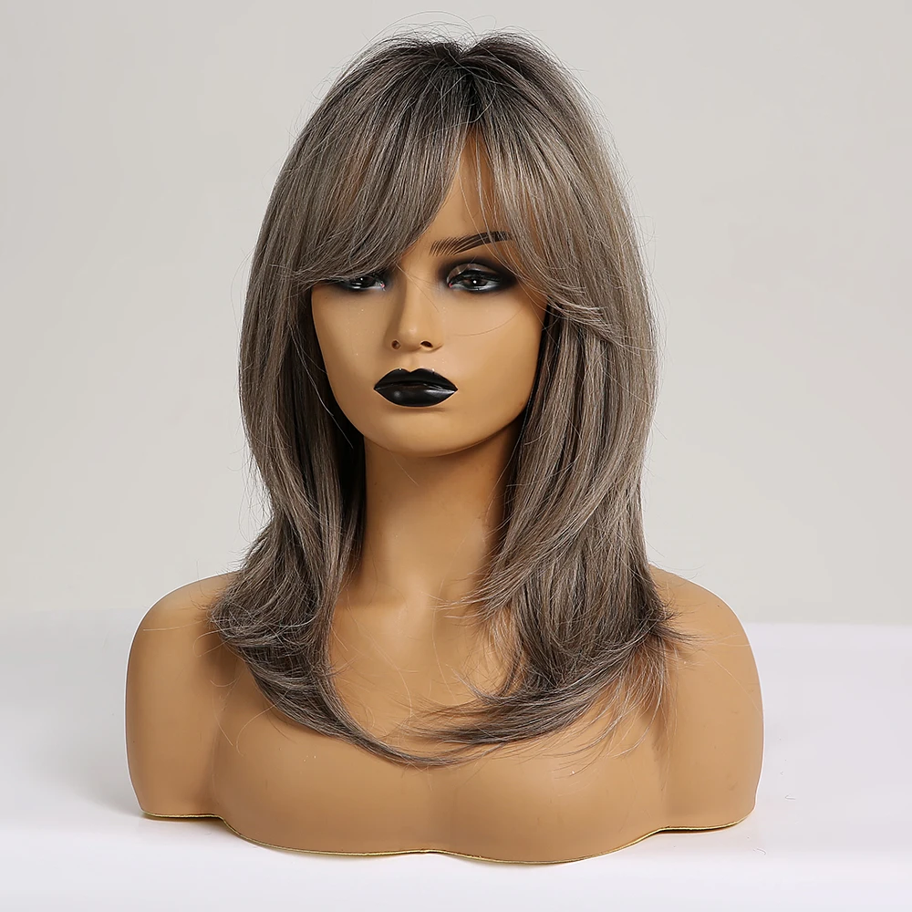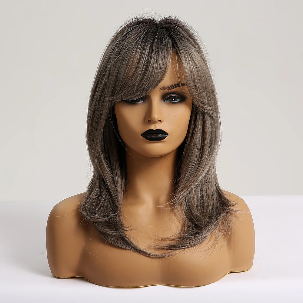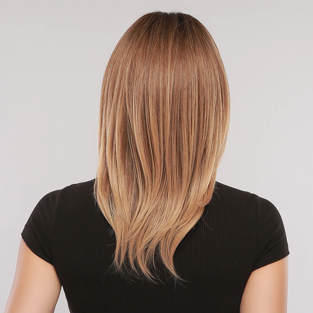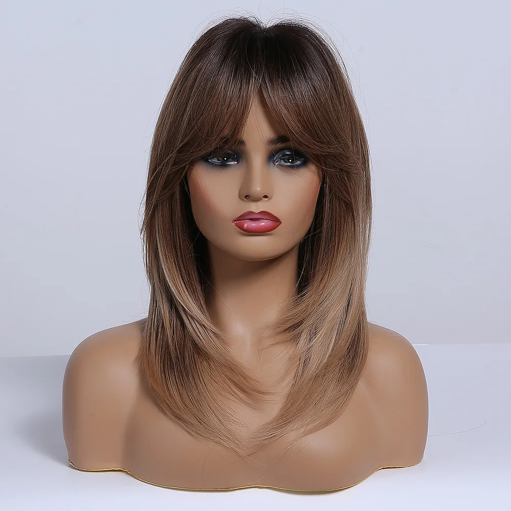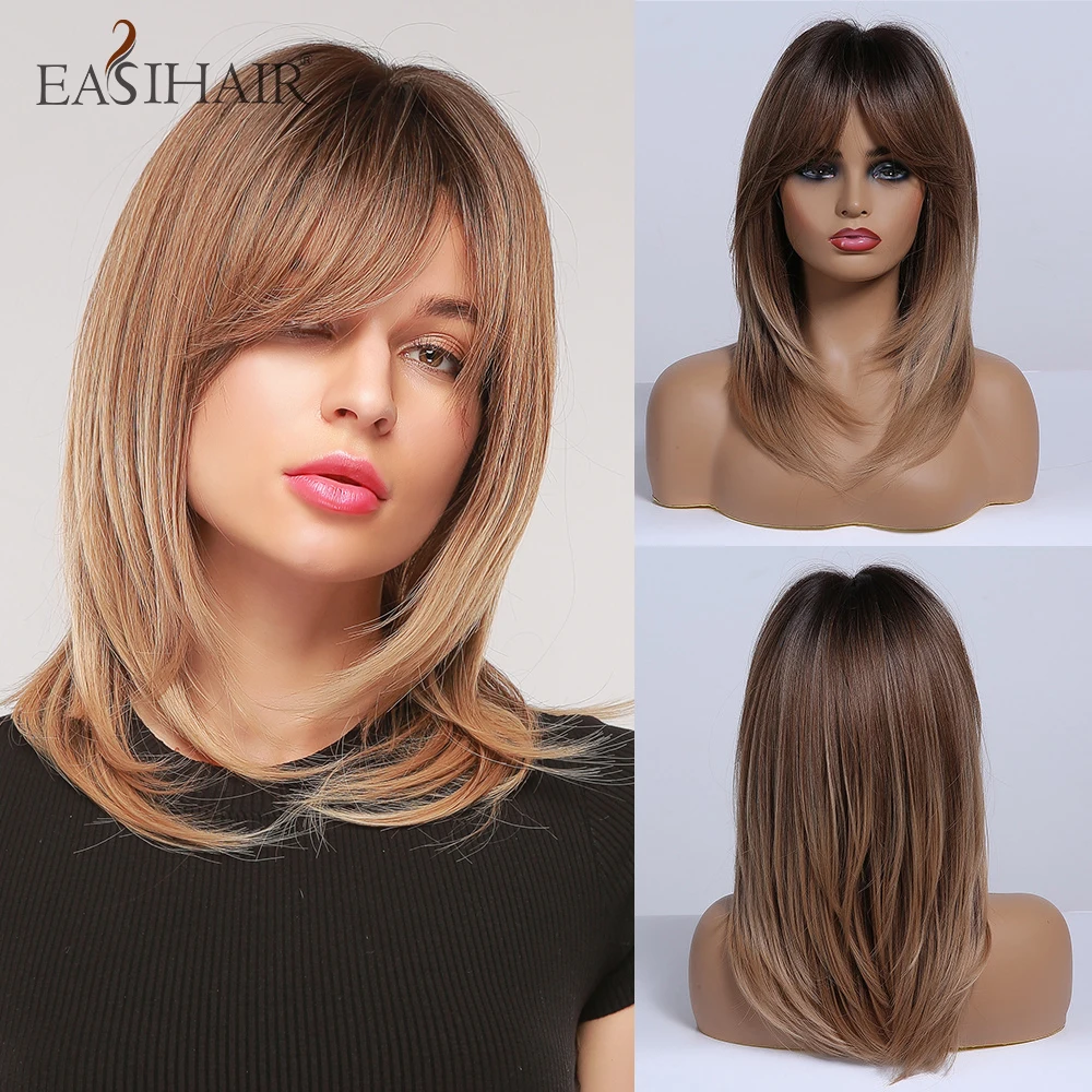 EASIHAIR коричневый Омбре синтетические волосы парики для женщин натуральный волос многослойный парик с челкой средней длины Косплей парики термостойкие