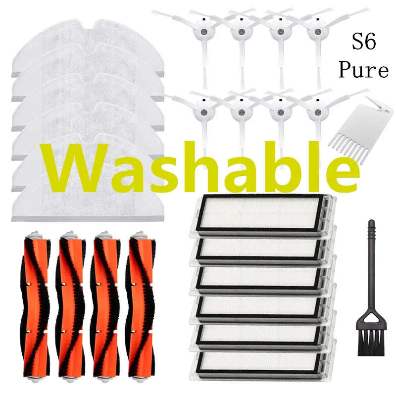 Моющиеся детали робота для Xiaomi Roborock S6 Pure S6Pure Mi робот пылесос (Центральнаябоковая щетка Hepa фильтр Швабра Ткань) Наборы