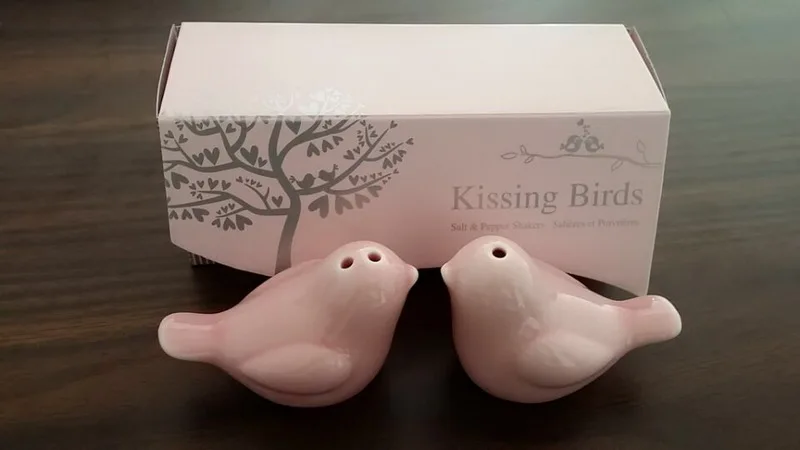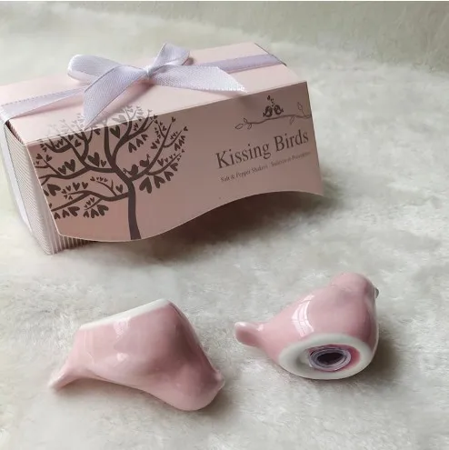 1 комплект X целующиеся птички розовый Керамика соль и перец шейкеры свадебной свадебный душ бесплатная раздача подарков на вечеринке