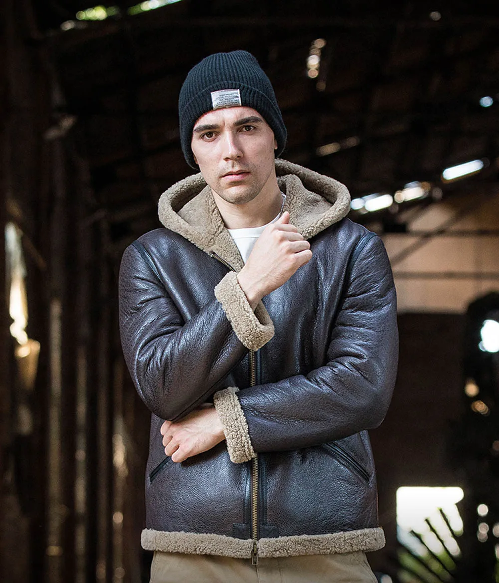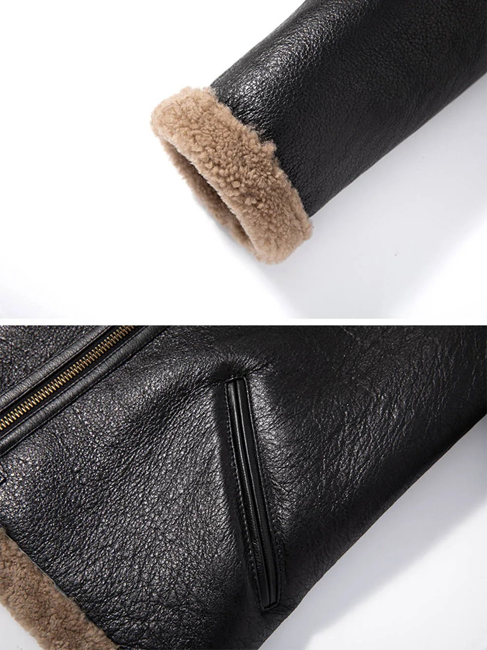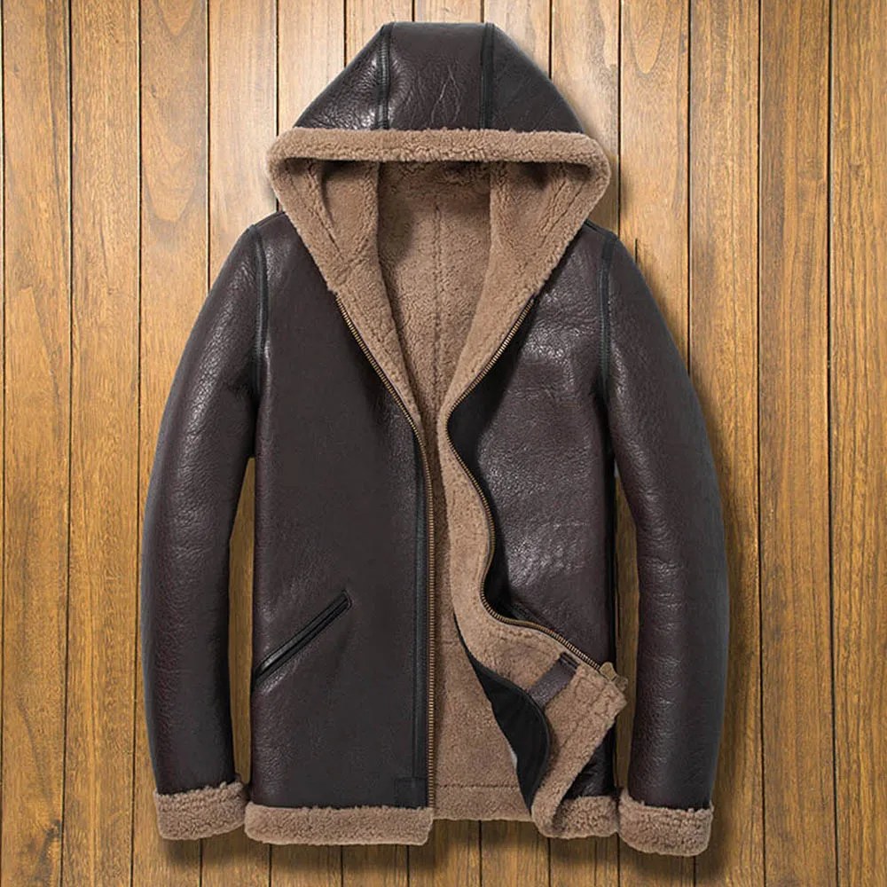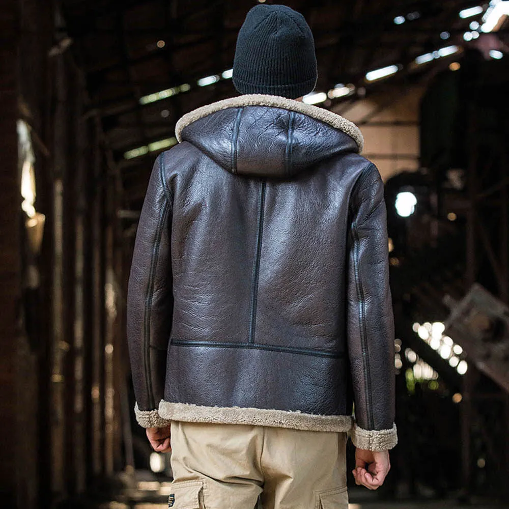 Шуба LUHAYESA мужская с капюшоном, теплая натуральная овчина, натуральная кожа, овчина, коричневый черный, зима