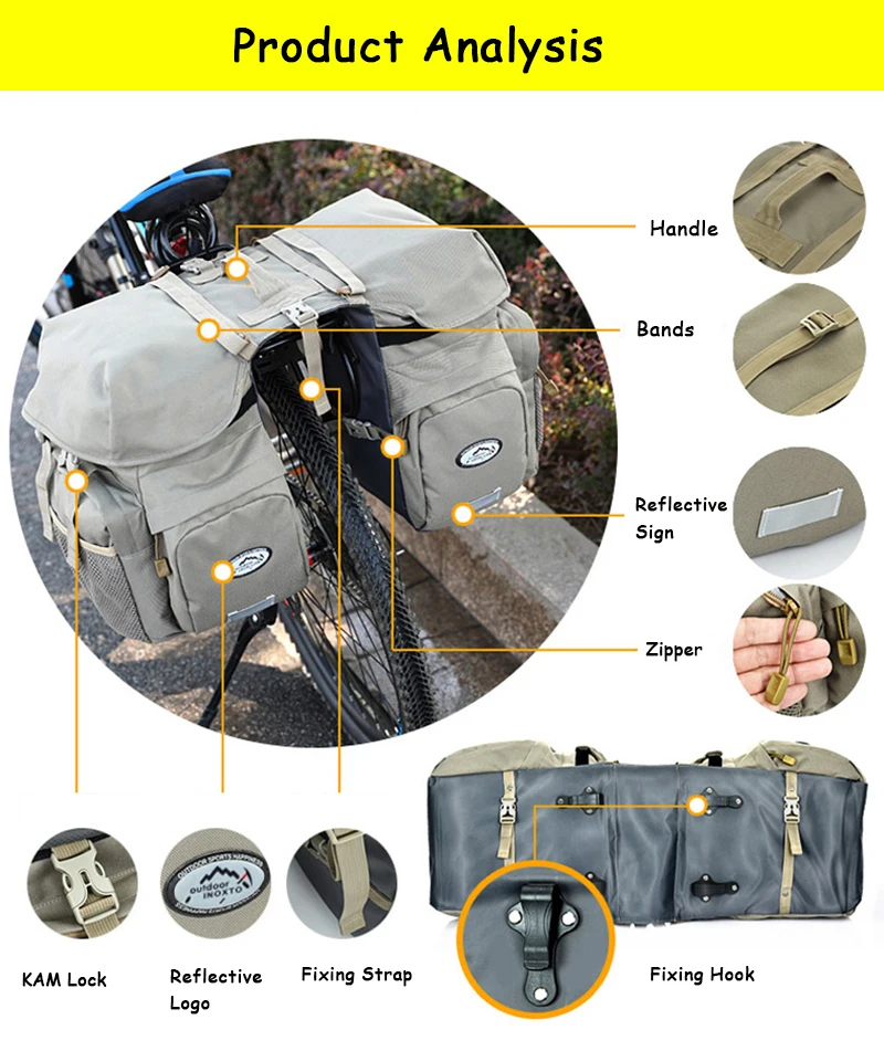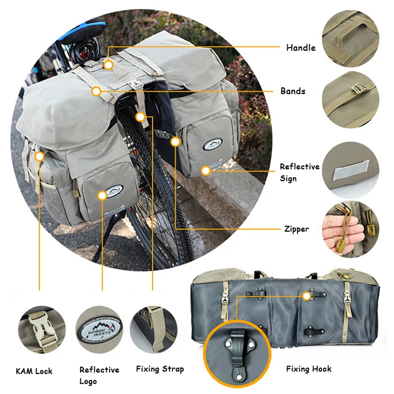 Сумка на багажник велосипеда 2 в 1, 50 л, многофункциональная, водонепроницаемая, двухсторонняя