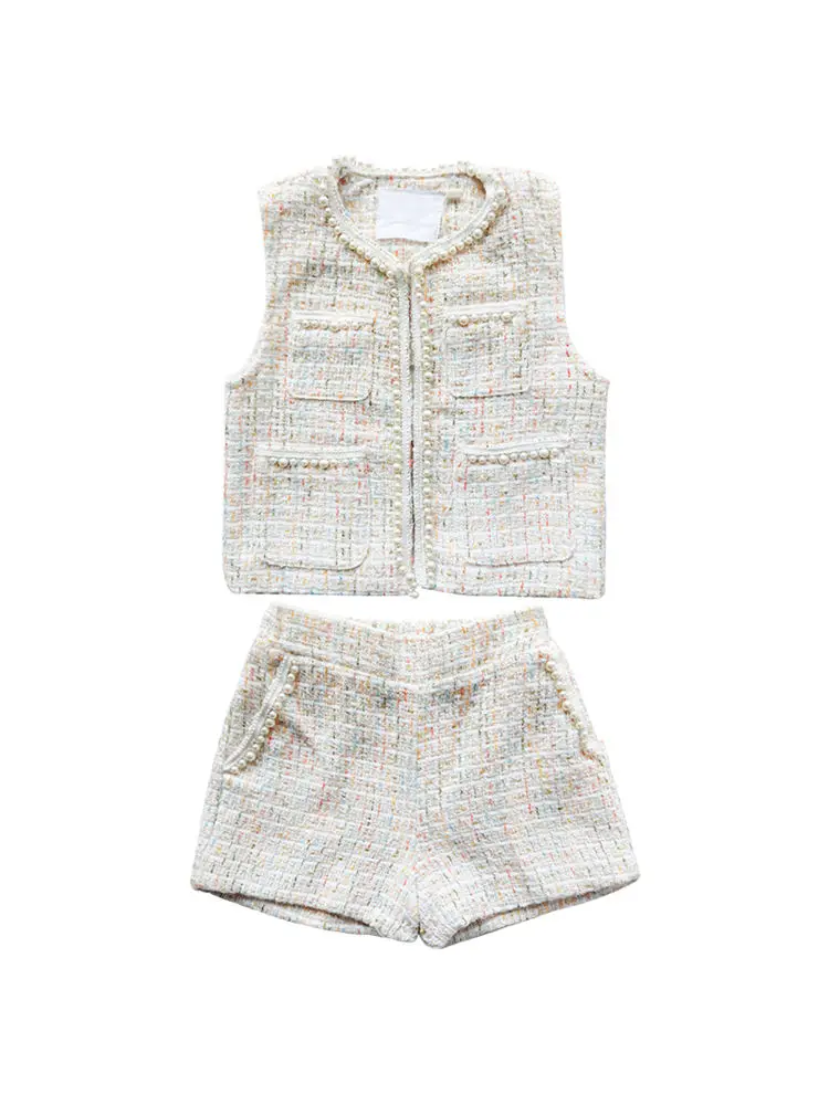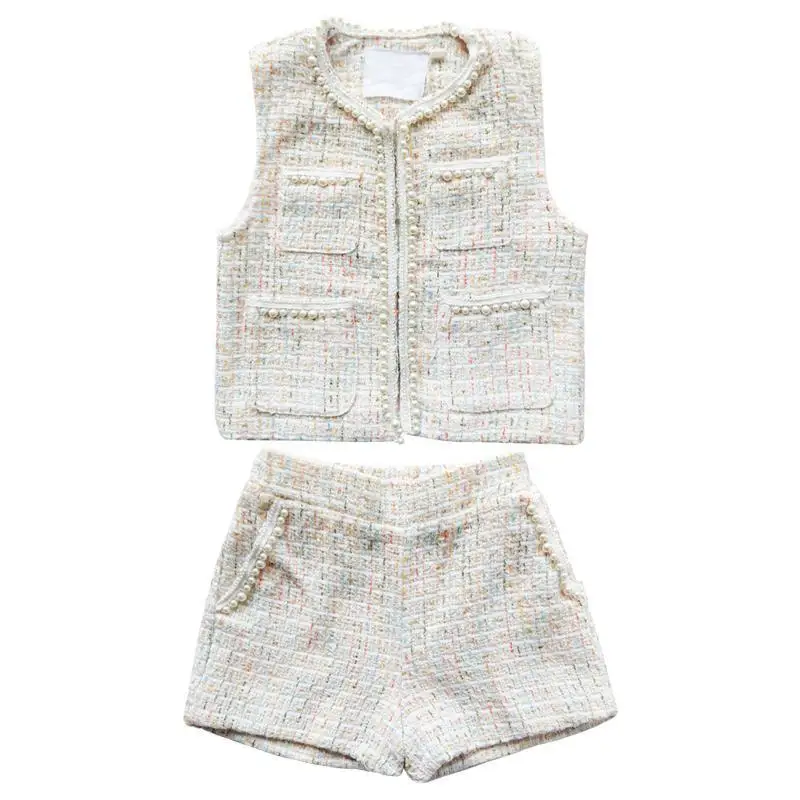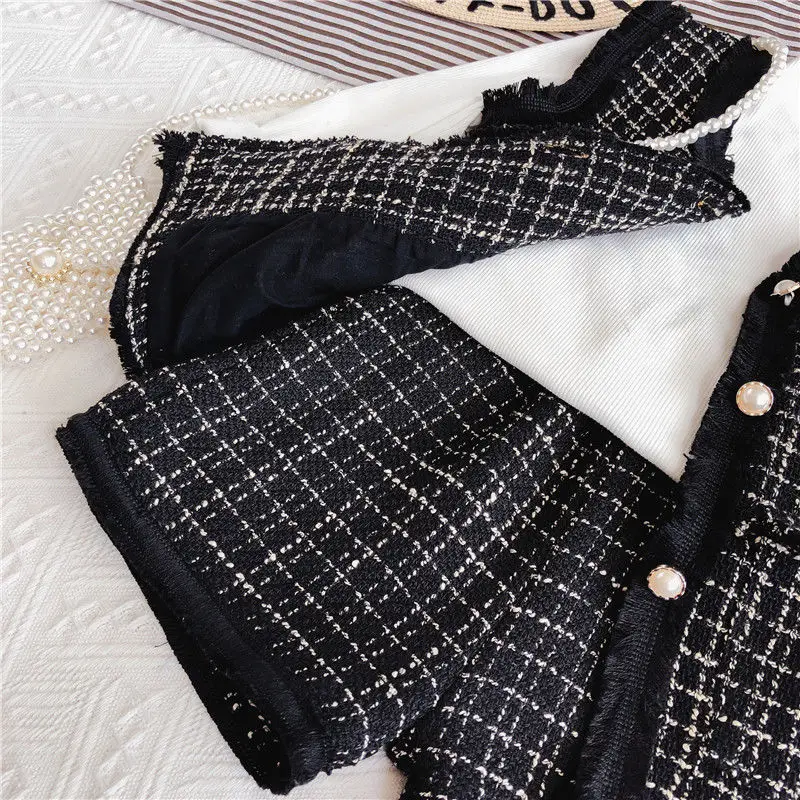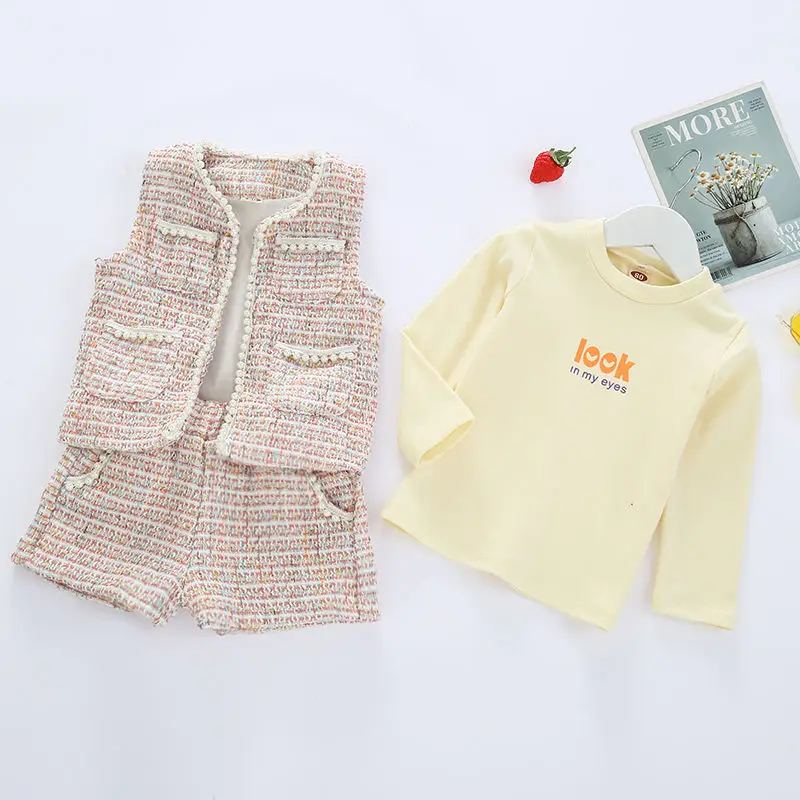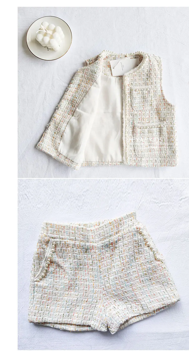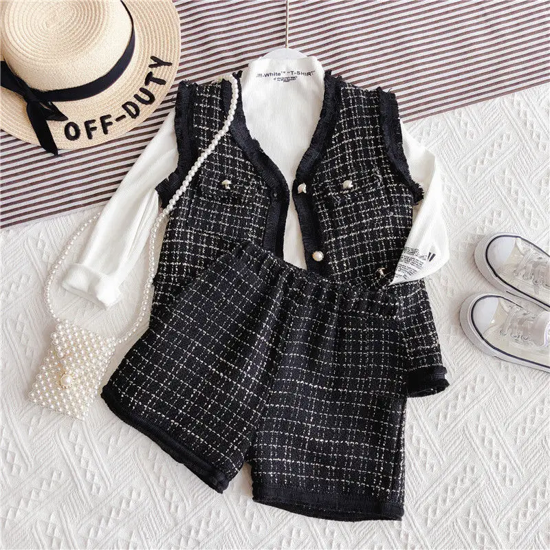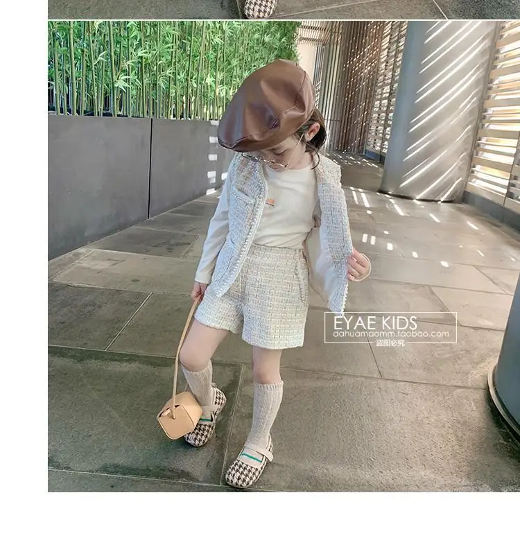 Модный комплект одежды для маленьких девочек с бисером, комплект из 3 предметов, куртка + свитшот + шорты, детский элегантный костюм на весну и осень, детская одежда