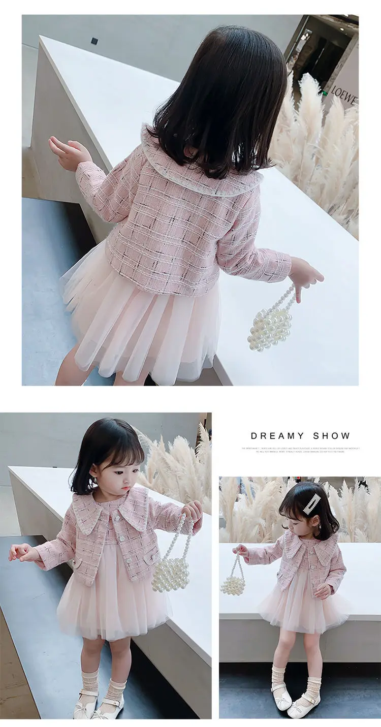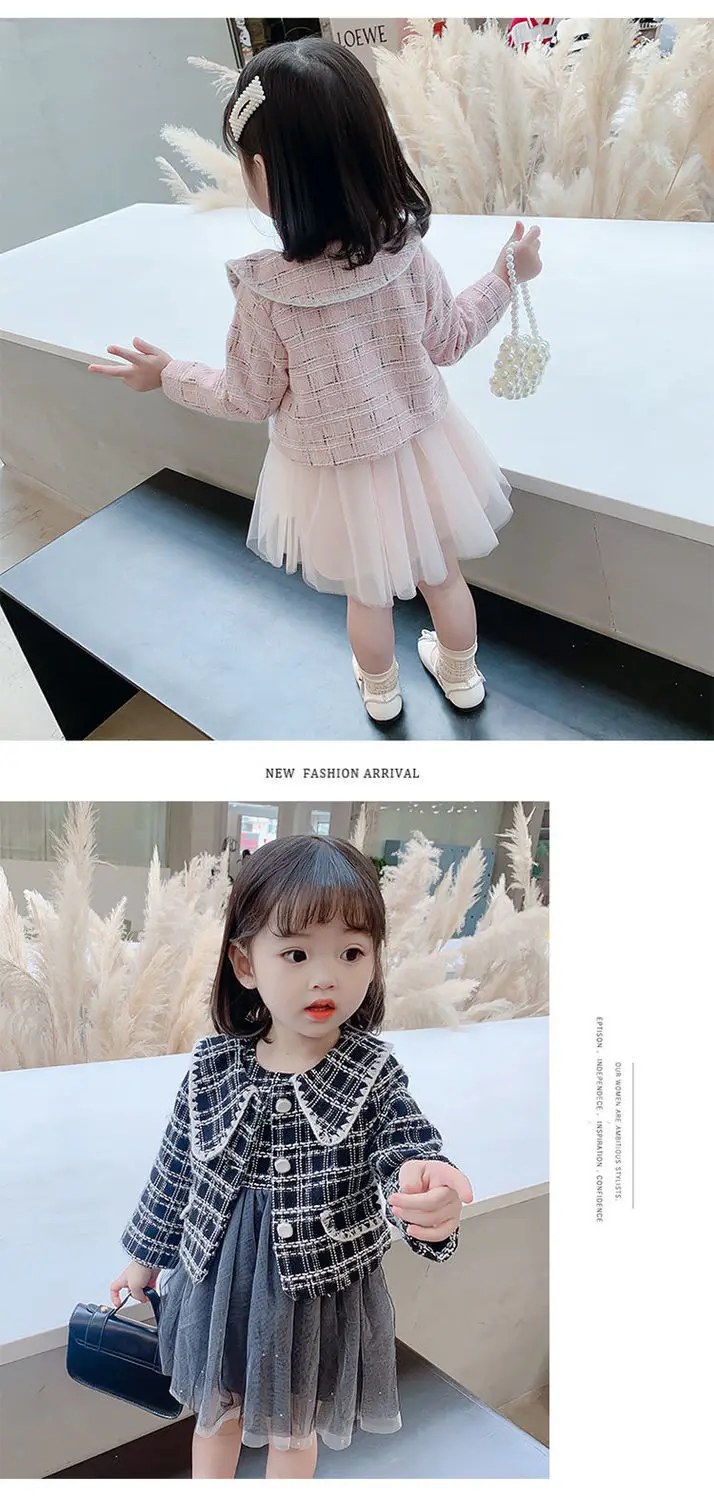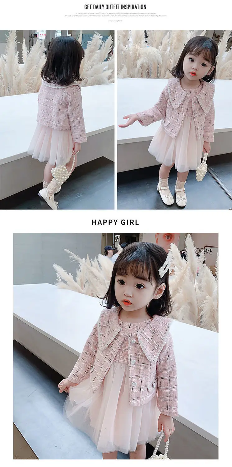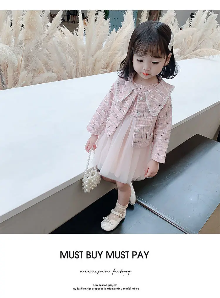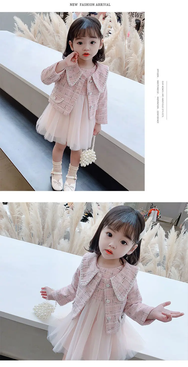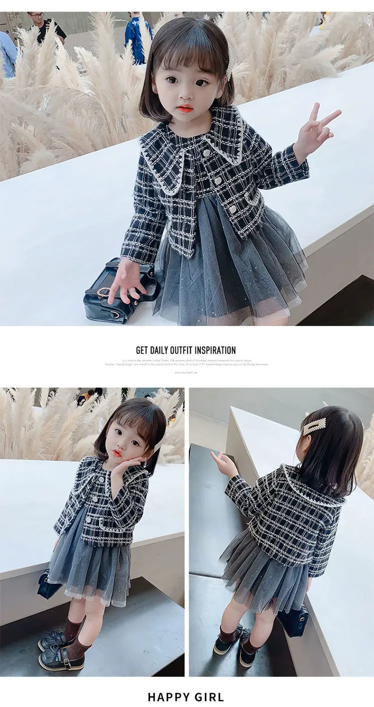 2020 Элегантный комплект одежды для маленьких девочек, клетчатая куртка + Сетчатое платье-пачка модные костюмы для девочек на весну-осень детская одежда