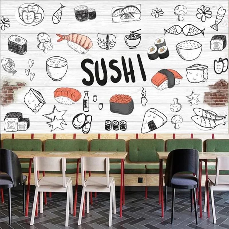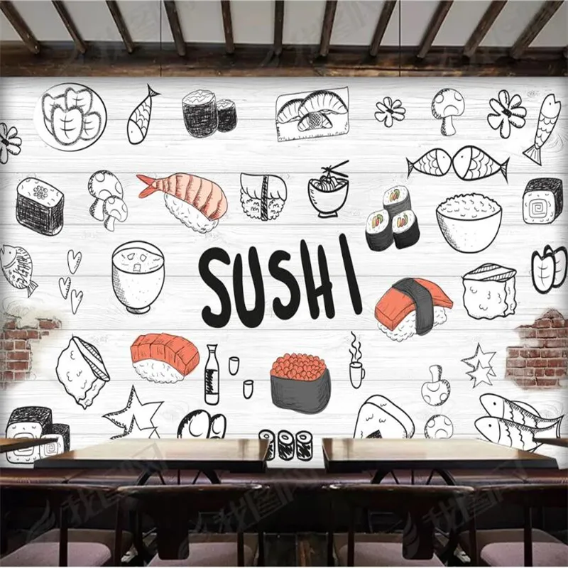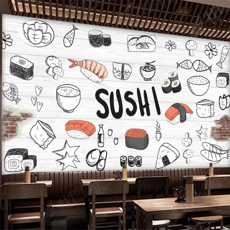 Современная доска ручная роспись милые обои для суши ресторана 3D суши японский ресторан промышленный Декор настенная бумага 3D