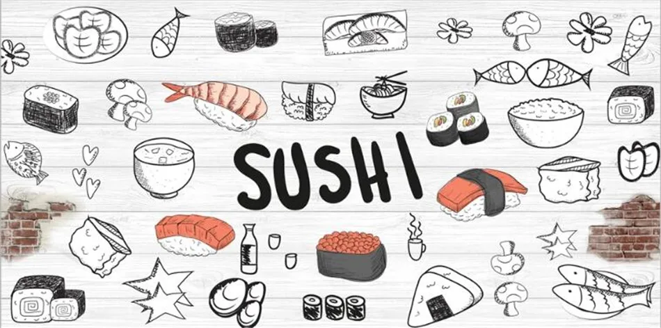 Ручная роспись мультфильм суши деревянная доска фон настенная бумага Фреска японская кухня ресторан промышленный Декор обои 3D