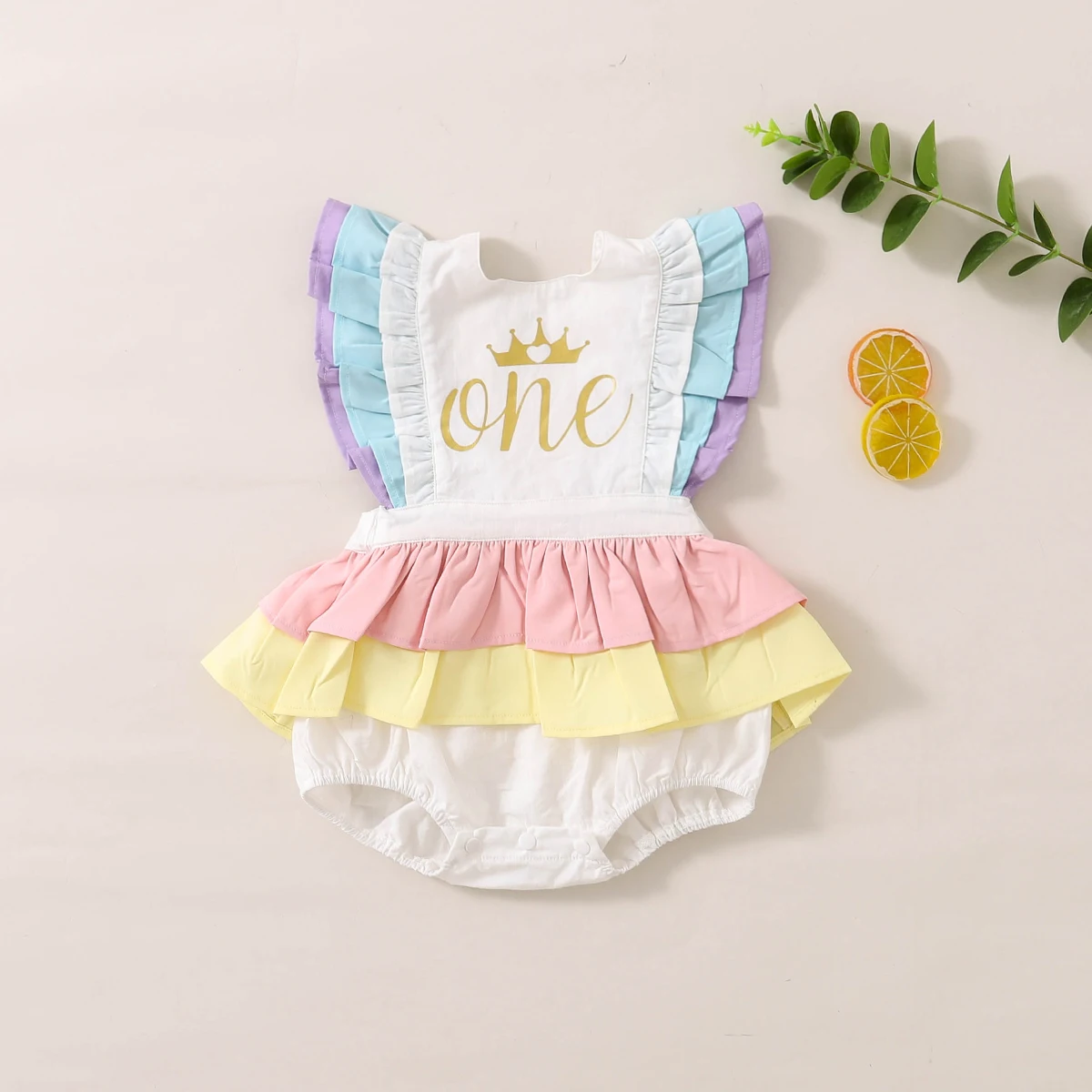 Хлопковый комбинезон для маленьких девочек на День рождения; Плиссированный кружевной комбинезон без рукавов с принтом Золотой короны; Пышная юбка с открытой спиной и бантом Размер (см)