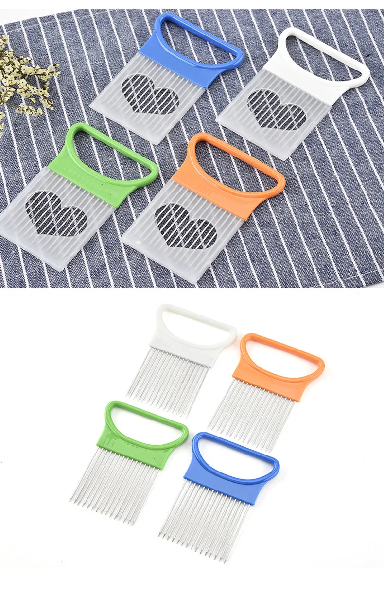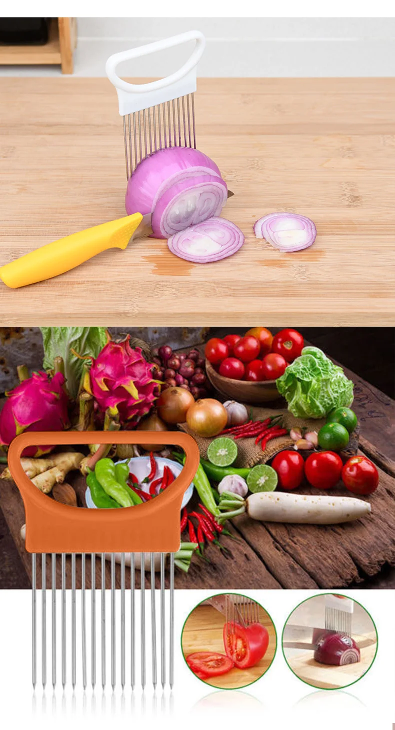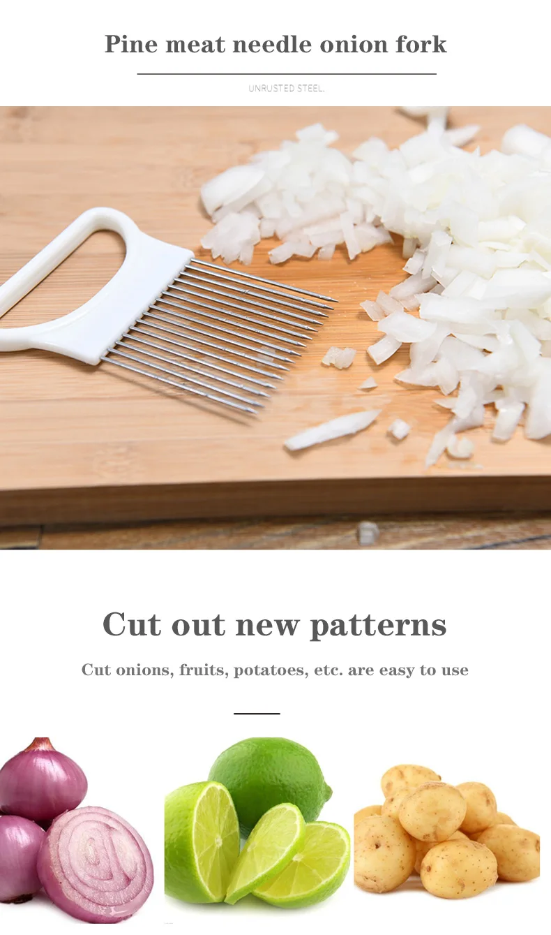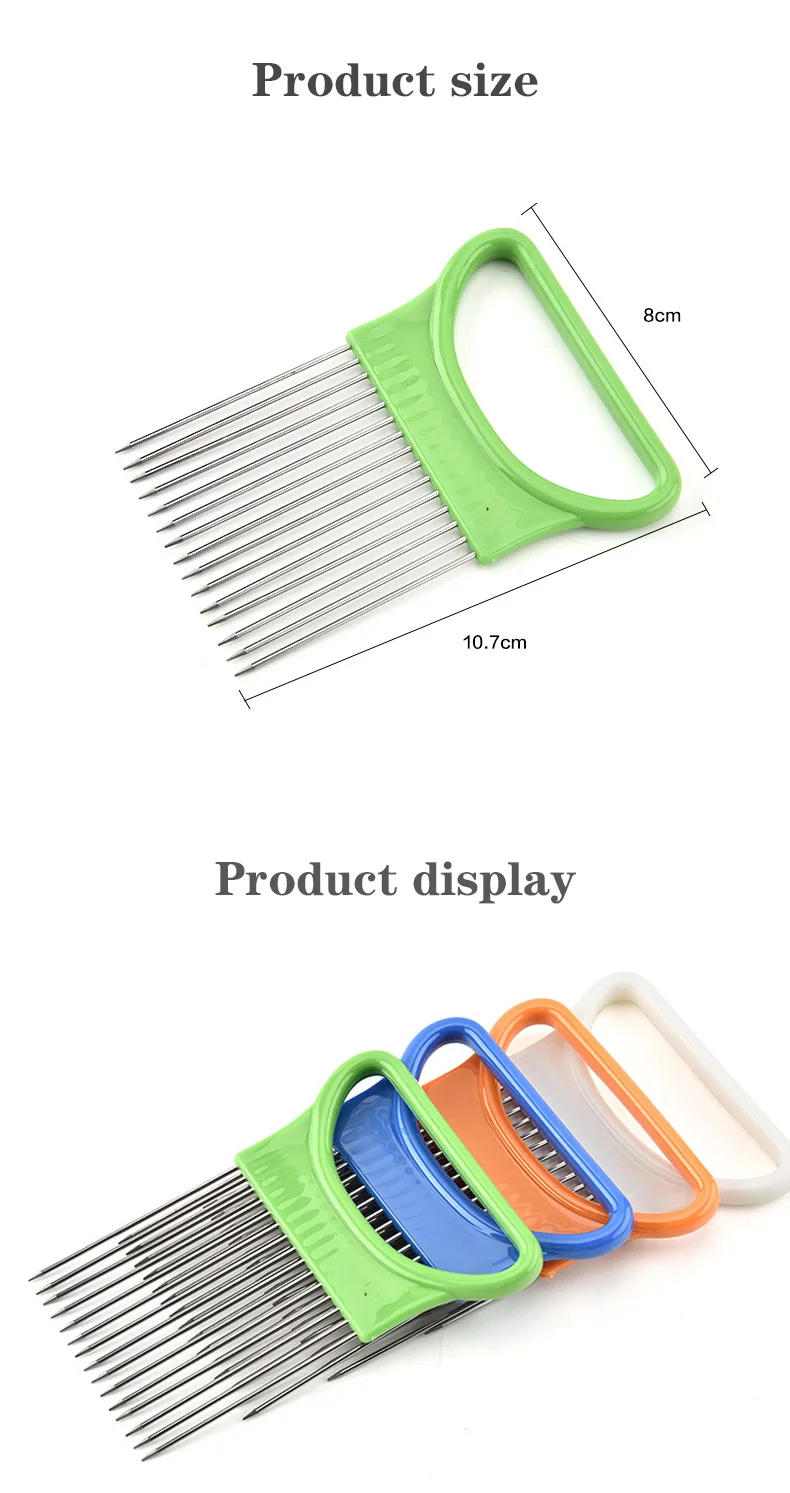 Многофункциональная резак для лука из нержавеющей стали, пластиковый слайсер для овощей игла для томатов, Шреддер металлический игла для мяса, кухонные принадлежности