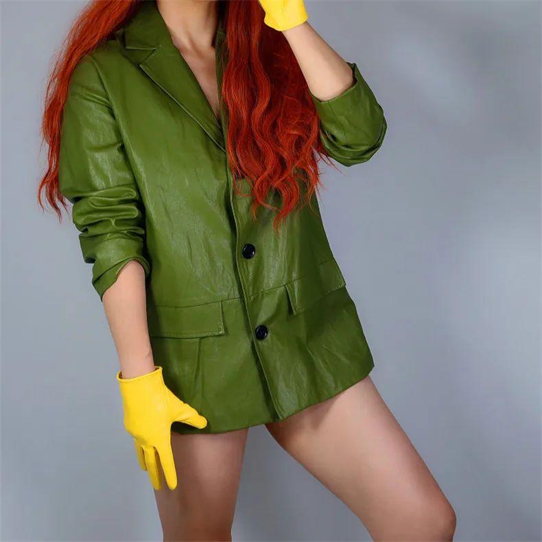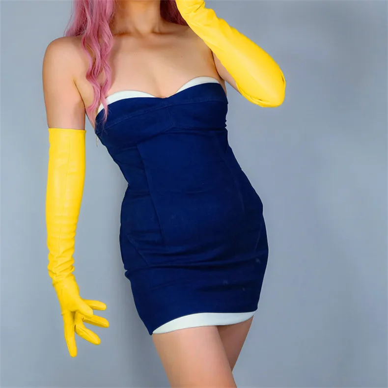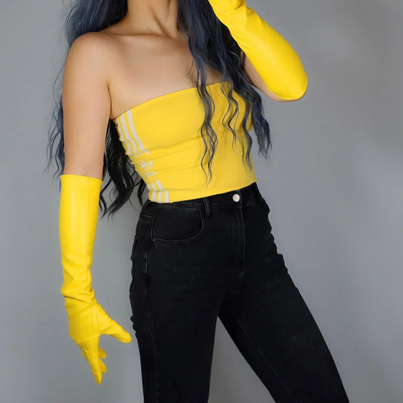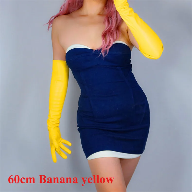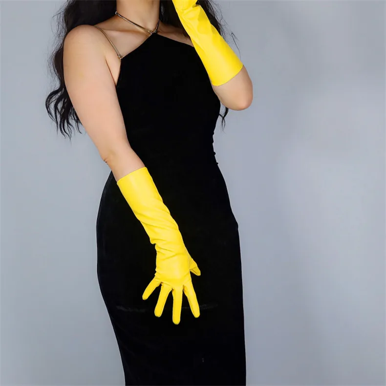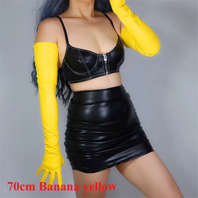 Очень длинные кожаные перчатки женские 70 см искусственная кожа эмуляция овчина банан желтые женские перчатки вечерние WPU293
