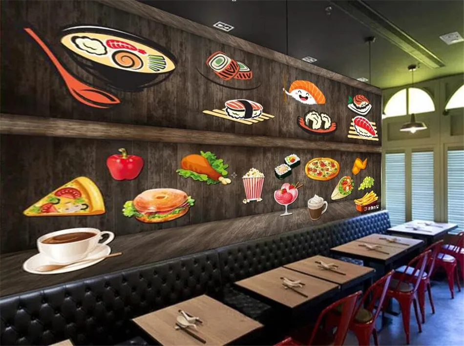 Пользовательские японские кухни Суши магазин обои пиццы гамбургеры Ресторан снэк-бар фон настенная бумага Papel де Parede 3d