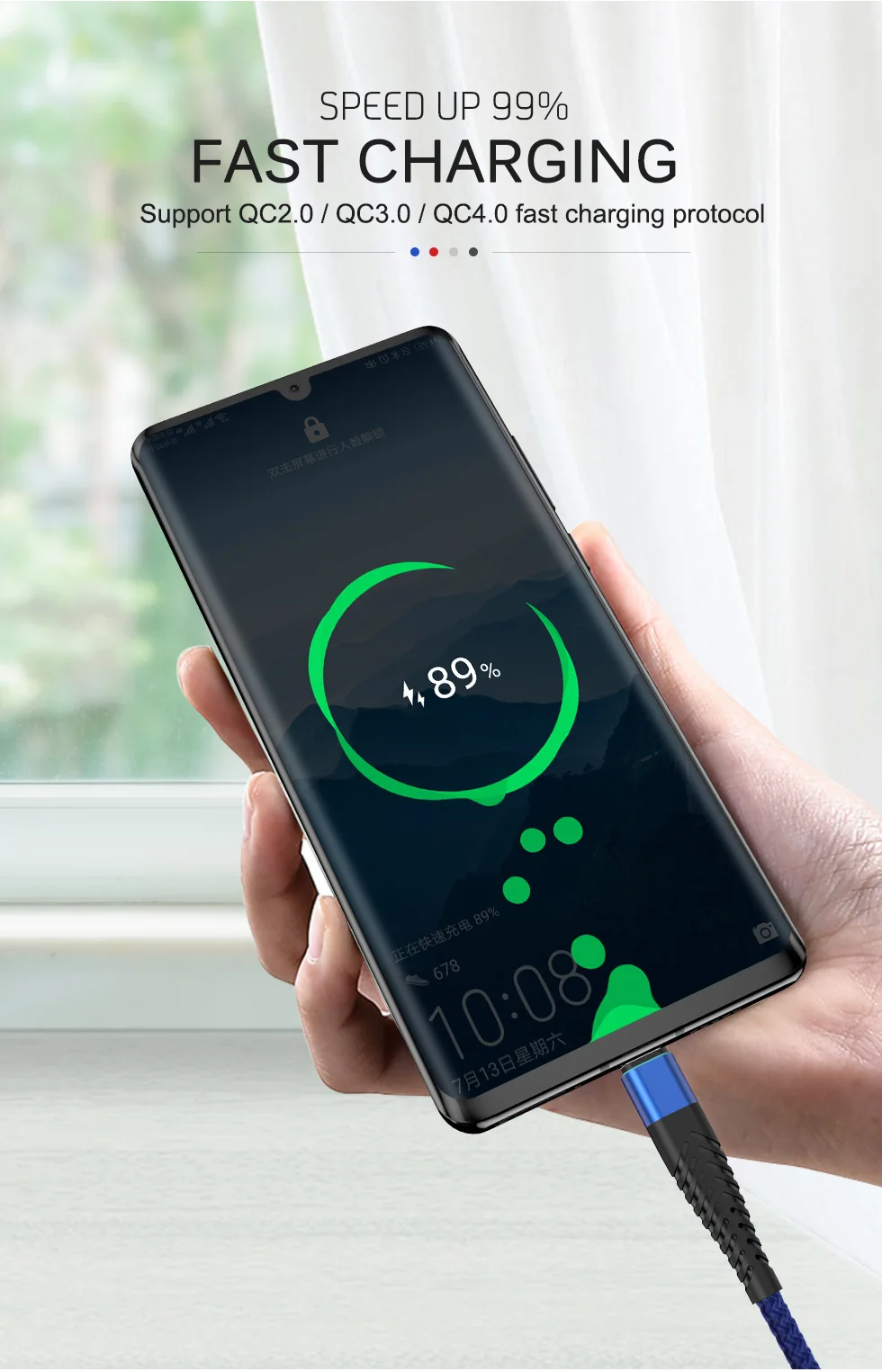 USB-кабель для Samsung Galaxy S20S10Xiaomi Mi 109Huawei P30P40, 3 А